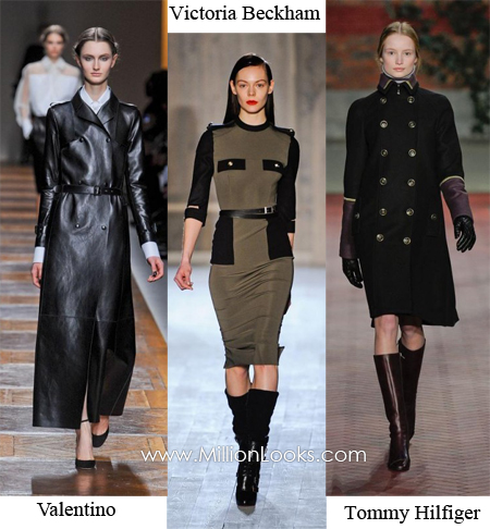 Military is another hot trend for this year! Yayy! I personally love it! Dark colours(burgandy,grey,beige,black),rich textures! That middle-war feelin' is great! Reminds me of great love stories(Pearl Harbor etc)! This year it's definitely in as our fav designers keep adding it to their collections! With jackets,leather jackets,coats,boots etc! for men and for women! Are you ready for a time trip? I am! Pieces like that are easily compaired with pretty much everything! Jeans,pants,wool! and even with softer materials like lace,fur(faux of course!),silk! You know for a great contrast! Add one of those garments to your wardrobe asap!