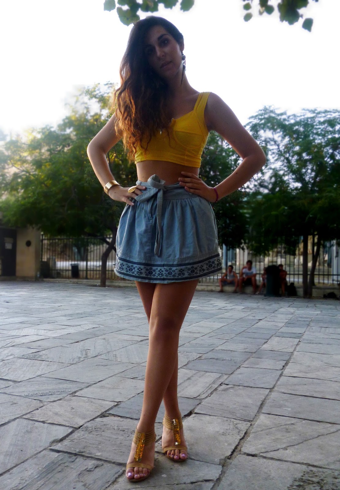 Great colours , super combos and a great way to show-off those flat bellies u've been workin' so hard all winter for ladies ! I paired it with my fav high wasted denim skirt to outline my waist and some (bu not all ) my stomach! (perfect combo!) Crops are also a great thing to wear with a high wasted long skirt as well... another really nice summer outfit! As I went for a yellow one ( the colour of the sun! sooo summery -bold colors are really in too- ) I decided to go with gold for the accesories to make it a lil' bit more glamorous n' night out material! This outfit seriously matched my cocktail (really I didn't plan this! ) SICK! n' chic of courrse!