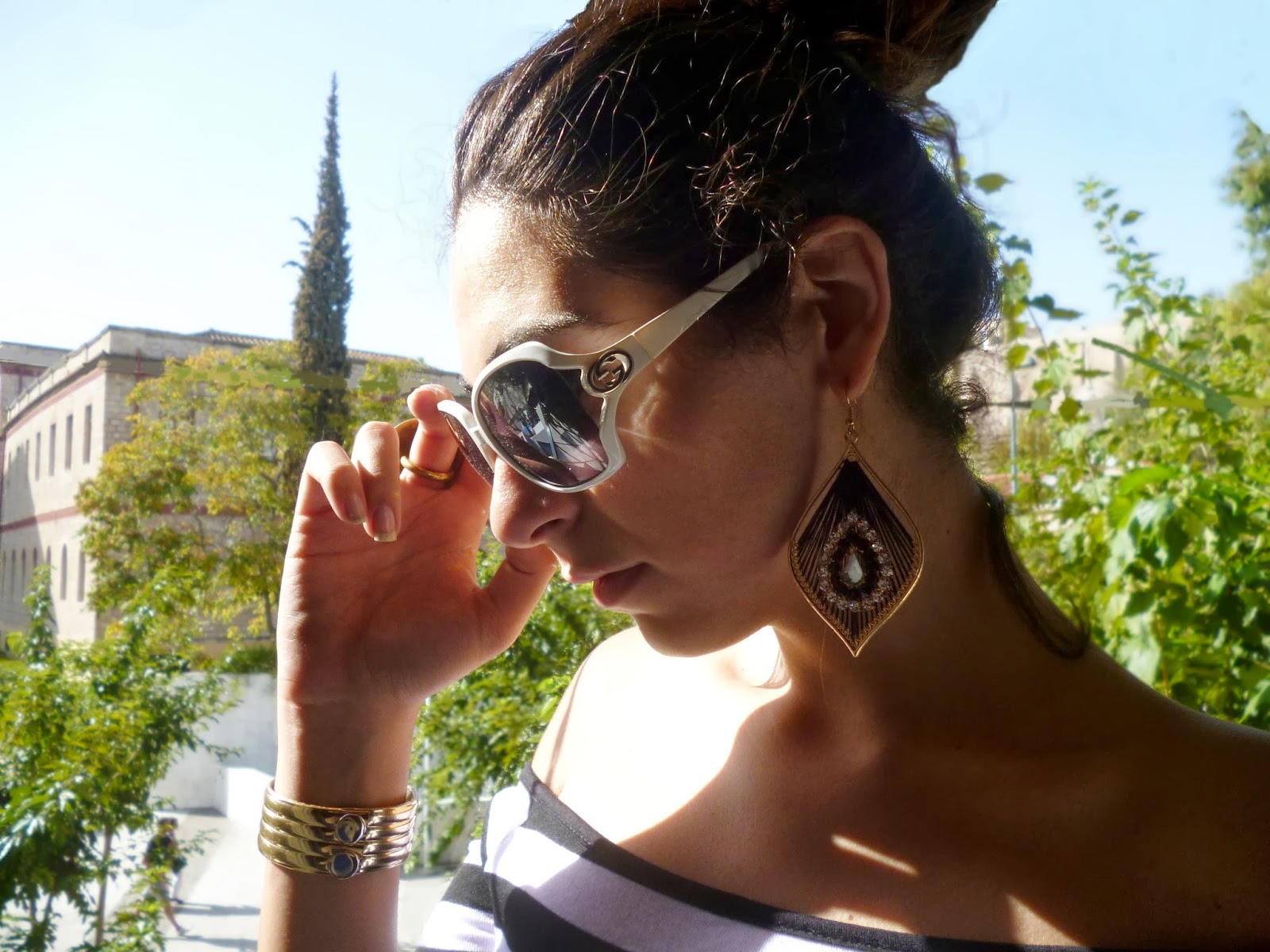 As you can all see the weather is good again ! Gosh, I couldn't be happier.. It was time for a night out so I wore this fab bodycon dress that hugs my body perfectly. I found it on Choies.com a new site we discovered, the link is here : http://www.choies.com/ and let me tell ya sistahs.. They have good sales ! Anyways on to the dress it combines two of the hottest trends that are going on right now! Stripes n' black and white.. I told you, I'm obssesed with them, like seriously obssesed! Plus the dress is strapless.. But, it also has sleeves till the elbow. I am loving it! you get to show some cleavage and it's ah-mazing! We all need a little sexiness from time to time. Right girls? I also wore black tights and for the shoes, those black ankle boots had to be the perfect option. As for the accesories, it was all about gold, lil' black and much glam! Ohh and since the photoshoot took place at my house.. Look who's decided to join us! My pekingese baby Mulan, she is a fashion icon on her own! Oh btw don't forget to hype the look here on lookbook : http://lookbook.nu/look/5449862-Choies-Dress-H&M-Bracelet-Bozikis-Ankle-Boots