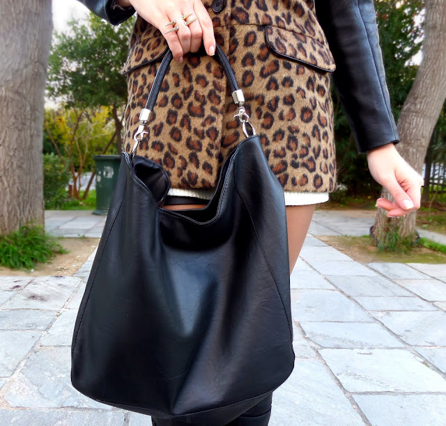 Τα Χριστούγεννα πια είναι πολύ κοντά! Τη προηγούμενη εβδομάδα ήμουν καλεσμένη στο Do it Eco tea party, για bloggers, στο ξενοδοχείο King George στο κέντρο της στολισμένης πλέον Αθήνας, ήταν υπέροχα! Περάσαμε τέλεια, μάθαμε πολλά και έφυγα με τρεις υπέροχες σακούλες δώρων! Πριν φυσικά κάναμε φωτογράφιση για το outfit, αν και είχε παγωνιά! Anyway νομίζω ότι το αποτέλεσμα είναι πολύ καλό! Όσο για το outfit αποφάσισα να δώσω λίγο edge με αυτό το λεοπάρ παλτό, το οποίο είναι πολύ in φέτος... Εγώ βέβαια είμαι καιρό fan του! Μ'άρεσαν πολύ τα δερμάτινα μανίκια που ταίριαζαν απόλυτα με την τσάντα και τις μπότες μου! Βασικά είναι το φετινό trend, άσπρο-μαύρο, με μια leopard twist! Περιμένω να ακούσω τις εντυπώσεις σας!