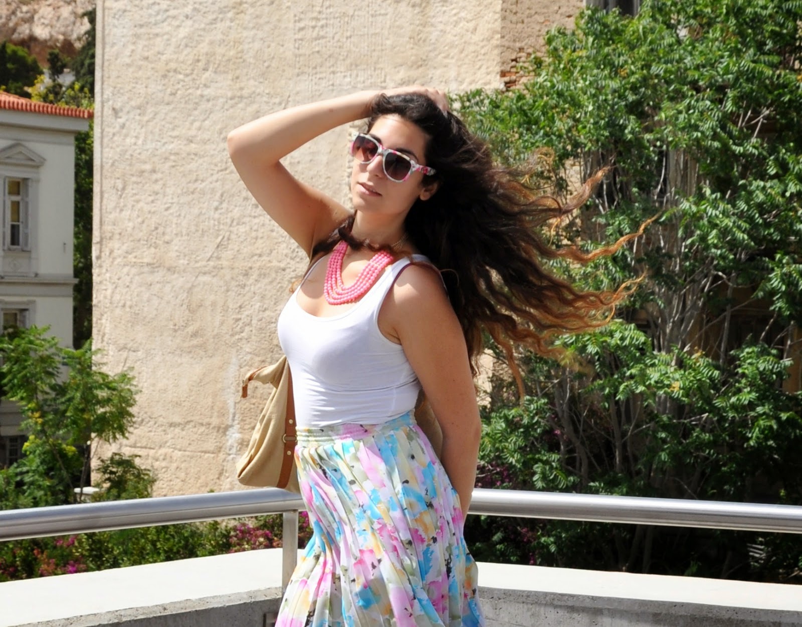 Hello Fashionistas! One of the biggest trends this summer is pleats. Pleats on dresses, mini-skirts or maxi-skirts and no wonder why actually! You see pleats give movement and femininity to the outfit, maybe that’s why they were used so much in ancient Greece. In order to understand that myself, I decided, that this post had to take place at the New Acropolis Museum. The ancient ruins were a great background and I got to see and admire once more the detailing of the Caryatids and Korai (statues of daughters) dresses, which were full of pleats. The sculptors of that time worked hard on building these statues exactly as they were, with all the details. As for my outfit, I chose to wear a maxi, floral, pleated skirt combined with pink accessories, as you know floral is also a huge trend this summer, so you will probably come across it in more of my next posts. I’m looking forward to your opinions on the outfit, stay tuned for more and have fun! P.S Who doesn’t want to look like an ancient Greek Goddess, right?