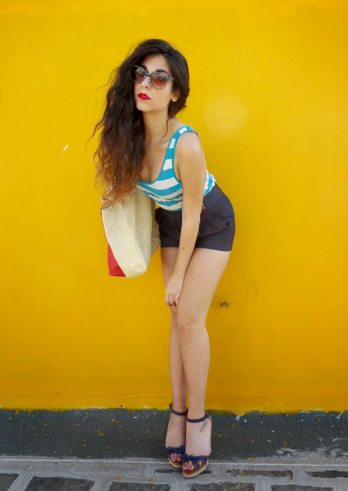 Αγαπητές Fashionistas! Ο καιρός μπορεί να είναι βροχερός, το καλοκαίρι όμως είναι εδώ για τα καλά και είμαστε έτοιμες για εξορμήσεις στην παραλία! Για το συγκεκριμένο outfit αποφάσισα να συνδυάσω ρίγες, ψηλόμεσο σορτσάκι και πλατφόρμες για ένα άκρως pin-up look , τέλειο για το καλοκαίρι. Όσο για το συνδυασμό των χρωμάτων, το μπλε, το λευκό και το κόκκινο είναι πάντα μια καλή ιδέα για το συγκεκριμένο pin-up style, αλλά και γενικότερα για το καλοκαίρι. Αν ετοιμάζεστε για παραλία λοιπόν, το look αυτό είναι τέλειο για εσάς, απλά αντικαταστήστε τις πλατφόρμες με ένα χαριτωμένο ζευγάρι σανδάλια και είστε έτοιμες. Να περνάτε super γιατί το καλοκαίρι είναι εδώ!
