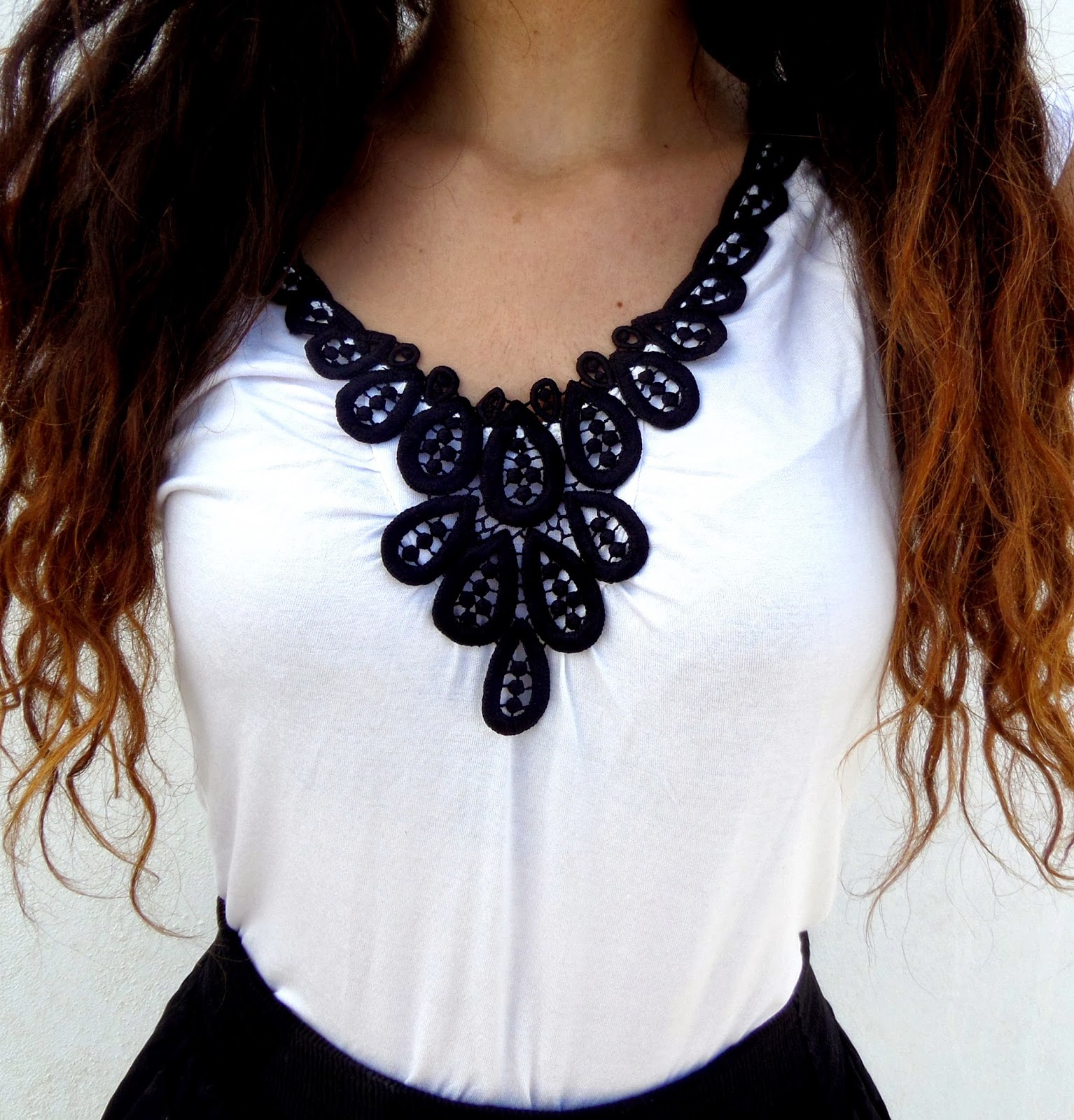 Hello Fashionistas! Όπως ήδη γνωρίζετε από προηγούμενα posts, λατρεύω υπερβολικά τα χρώματα και πραγματικά πιστεύω ότι είναι η καλύτερη επιλογή για το καλοκαίρι, μιας και τα ονειρευόμαστε όλο το χειμώνα. Αυτή τη φορά πάντως επέλεξα το ασπρόμαυρο στυλ, ακόμη κι αν είναι καλοκαίρι! Με το σωστό συνδυασμό ένα καλοκαιρινό look μπορεί να δείξει υπέροχα με αυτά τα χρώματα. Φόρεσα μια ψιλόμεση μαύρη φούστα και αυτή την λευκή μπλούζα με την statement λεπτομέρεια στη λαιμόκοψη. Τα statement κολιέ είναι πολύ in αυτή τη περίοδο και αυτό το πλέξιμο σίγουρα θυμίζει ένα τέτοιο. Μιας και το sporty n' chic στυλ είναι επίσης πολύ in συνδύασα το σύνολο με τις αγαπημένες μου γόβες που θυμίζουν sneakers, για να δώσω ένα πιο χαλαρό αέρα στο outfit. Βλέπετε θεωρώ πως στη μόδα δεν θα έπρεπε να υπάρχουν όρια, οπότε μη φοβάστε να σπάσετε μερικούς κανόνες, όπως το 'όχι χρώματα το χειμώνα' κλπ. Όπως πάντα ανυπομονώ για τις απόψεις σας. Να περνάτε καλά και να απολαμβάνετε το καλοκαίρι!