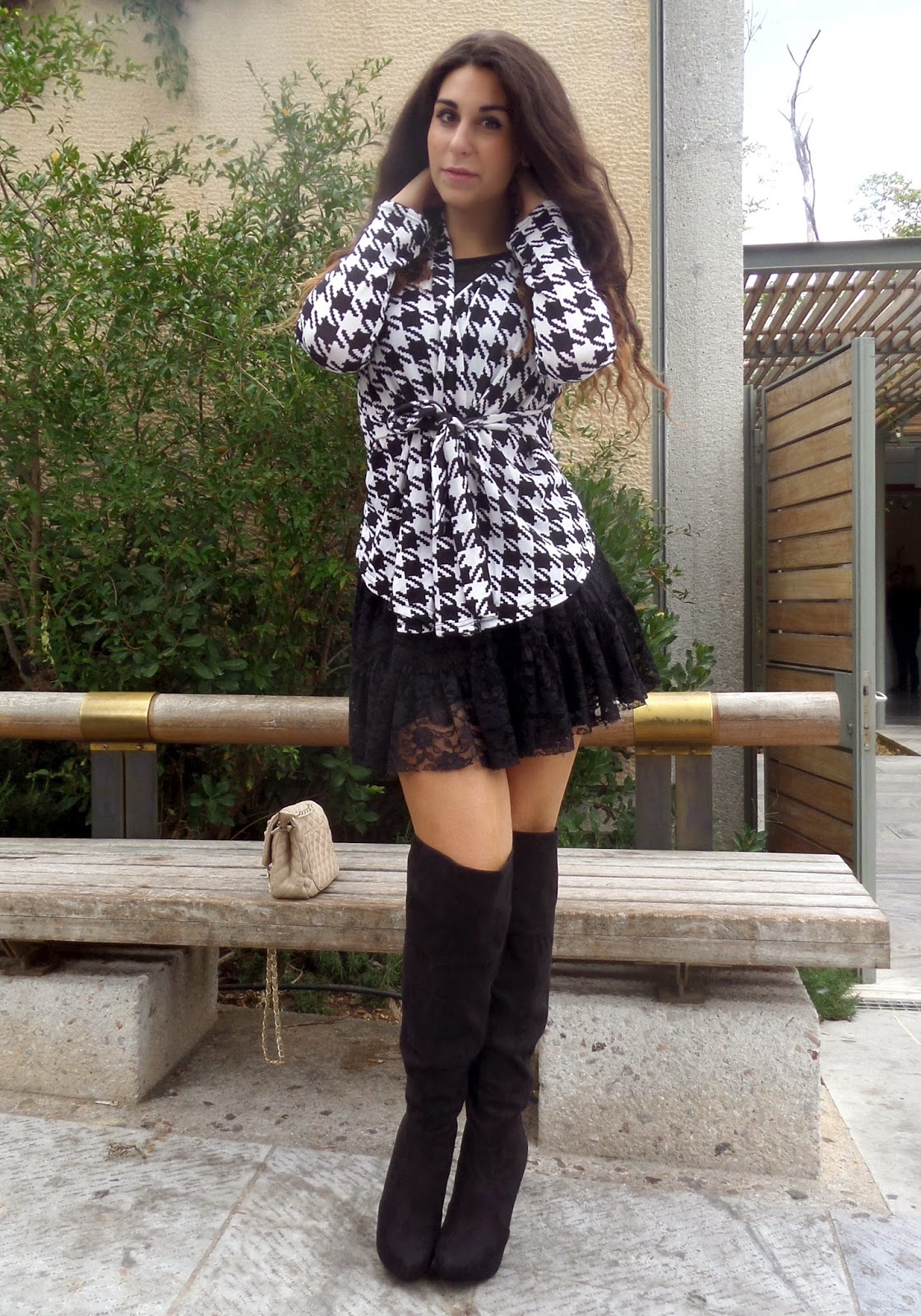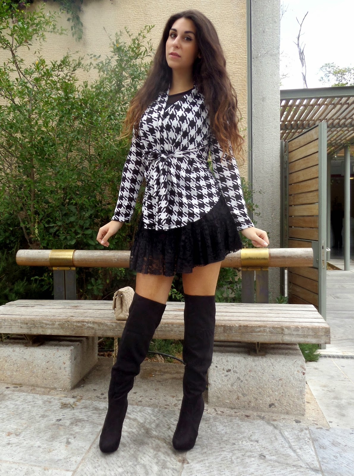 What a fab look! I adore houndstooth, and those boots are TDF!!! T. http://tickledpinkwoman.blogspot.com