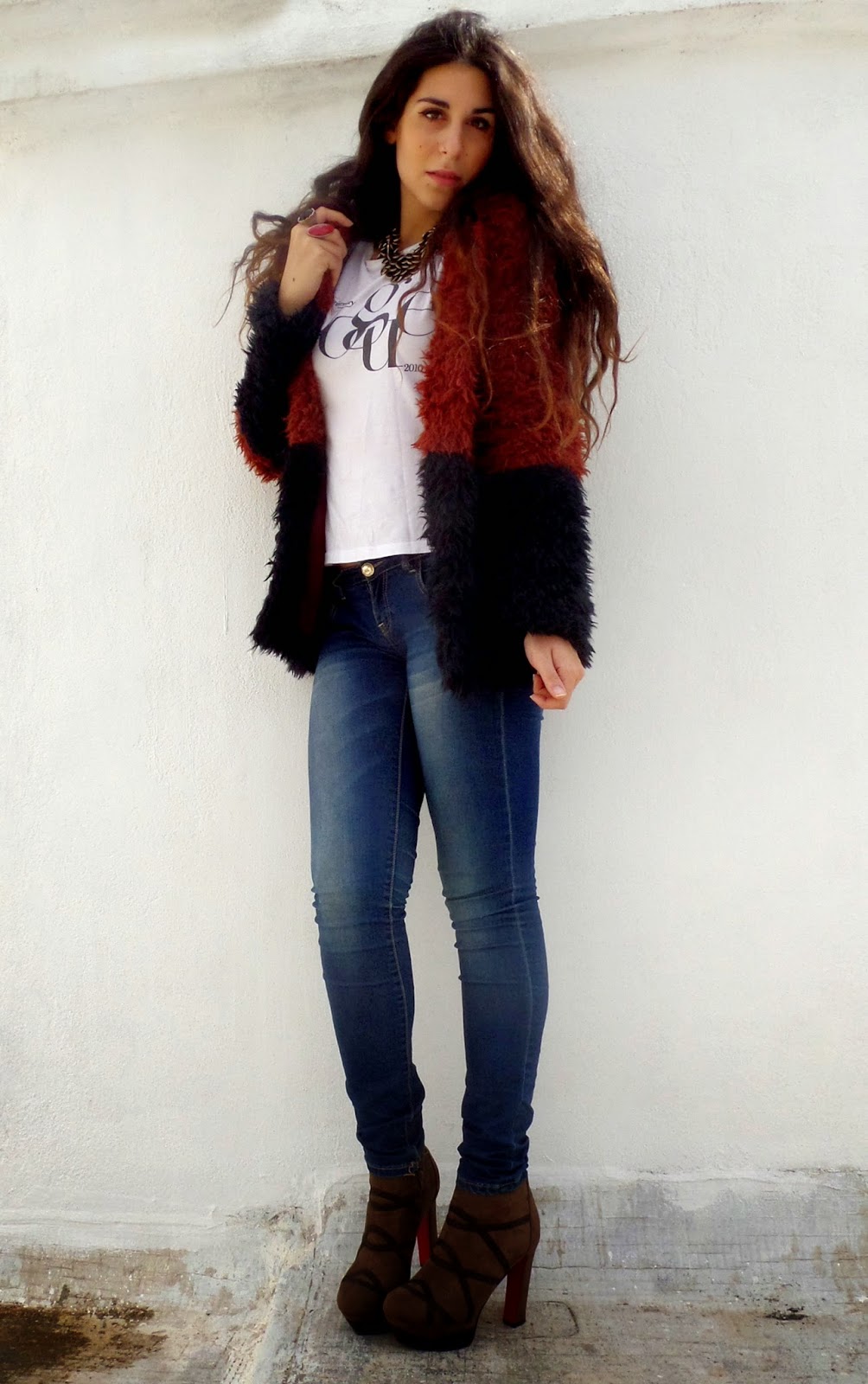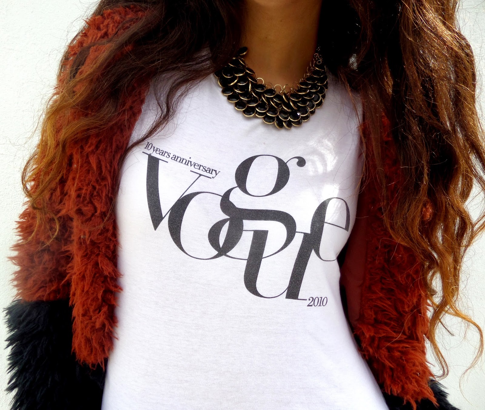 I don’t know about your area, but here it’s getting really cold… Winter is right around the corner and, truth be told, I’m not really thrilled. However, every season is beautiful and we always find a way to cheer ourselves up! My antidote for the bad weather and the cold is a fabulous wardrobe. So for this week’s outfit, I’m wearing one of my favorite Faux-Furs and I’m feeling really glamorous! Faux-Furs are perfect for looking chic and stylish, without hurting innocent creatures, so expect to see a lot of them in the posts to come. As for the rest of the outfit, it’s pretty basic but with glamorous touches. This T-Shirt is one of my favorites, since it reminds me of Greek Vogue. Unfortunately, it’s not being published anymore but I have my little souvenir! Whatever you do have lots and lots of fun!