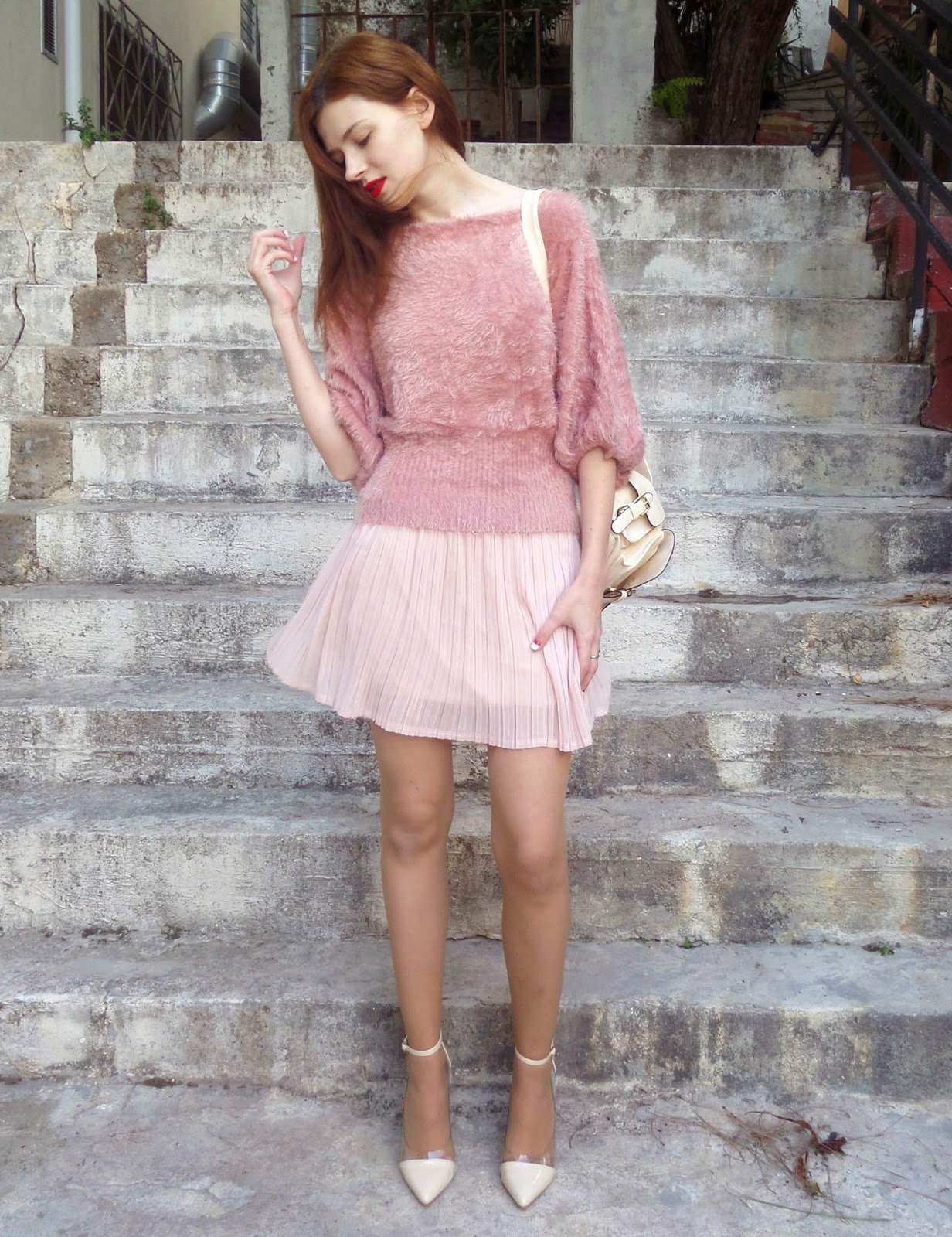 Γεια σας μπουκίτσες! Επιτέλους κάνω ποστ με το ντύσιμό μου μετά από 2 εβδομάδες παύσης. Τολμώ να πω ότι μου έλειψε να φωτογραφίζομαι και να μοιράζομαι το στυλ μου. Αυτή την εβδομάδα επέλεξα να ντυθώ σε παστέλ χρώματα,το ροζ και το κρεμ. Το πουλόβερ που φοράω είναι η πιο πρόσφατη αγορά μου και το πιο καλό είναι ότι το πήρα σε μια πολύ καλή τιμή, αφου έχουν ξεκινήσει οι εκπτώσεις. Επίσης το σακίδιο που φοράω είναι απο το σάιτ YESFOR.COM, το οποίο παράγγειλα γτ πάντα ήθελα ένα στιλάτο σακίδιο που θα με διευκολύνει στις βόλτες μου χωρις να με πονάει o ώμος μου. Ελπίζω να σας αρέσει το ντύσιμο μου και περιμένω σχόλια σας. Καλα να περνάτε! Φιλιά :)