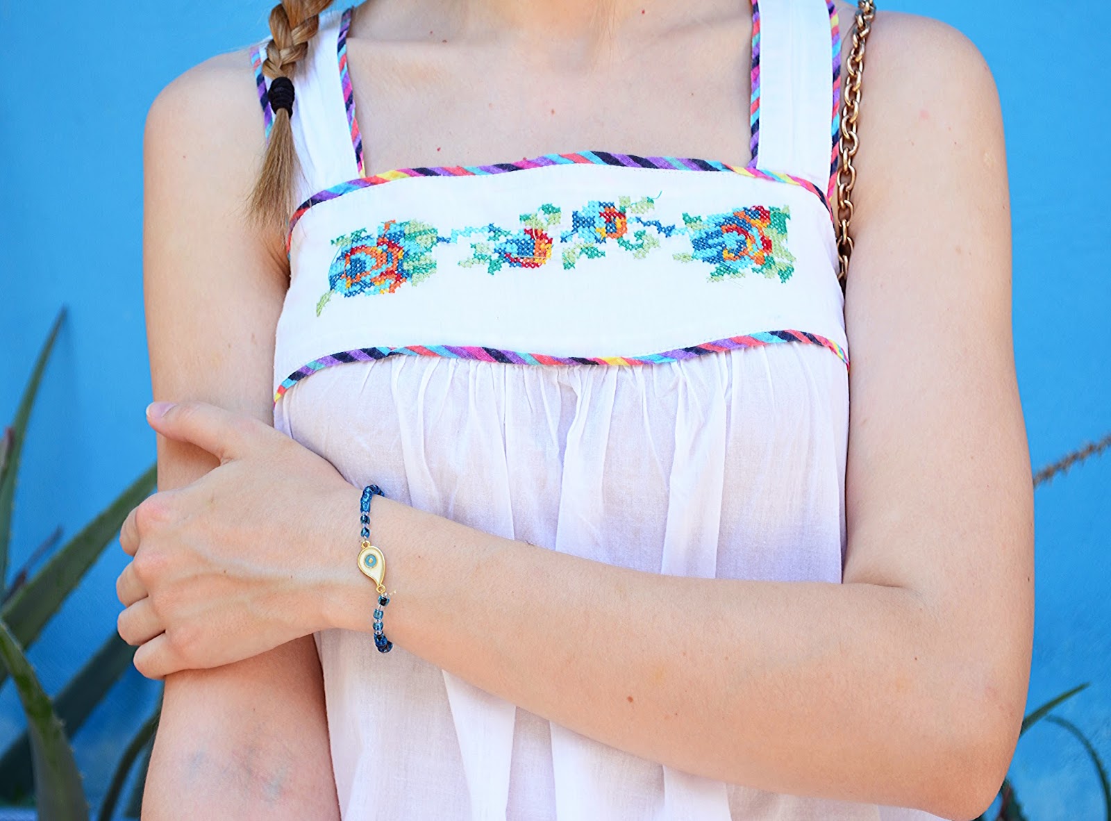 Γεια σας Μπουκίτσες! Είμαι χαρούμενη που κάνω επιτέλους ποστ, το οποίο αρκετά χαρούμενο και ζωντανό, χάρη στα φωτεινά χρώματα :) Σήμερα θα είμαι πολύ σύντομη, επειδή πρέπει να ετοιμαστώ για το διακοπές μου σιγά σιγά. Πήρα την απόφαση να μη κάνω ποστ για 2 εβδομάδες, γιατι θέλω να ξεκουραστώ λίγο και να περάσω χρόνο με αγαπημένους ανθρώπους, αυτό δε σημαίνει όμως πως δε θα ανεβάζω πολλές φωτογραφίες στο INSTAGRAM μου :) Όσον αφορά τα αξεσουάρ που φοράω, το βραχιόλι είναι το καινούριο που απόκτημα και χαίρομαι για αυτό. Είναι χειροποίητο και μπορείτε να το βρείτε από το ελληνικό brand STEKIA PANTOU σε αρκετά χρώματα. Μου αρέσει πολύ που είναι διακρτικό, είναι το στοιχείο που θέλω να έχουν τα κοσμήματα μου. Καλά να περνάτε και περιμένω εντυπώσεις σας! Φιλιά :)