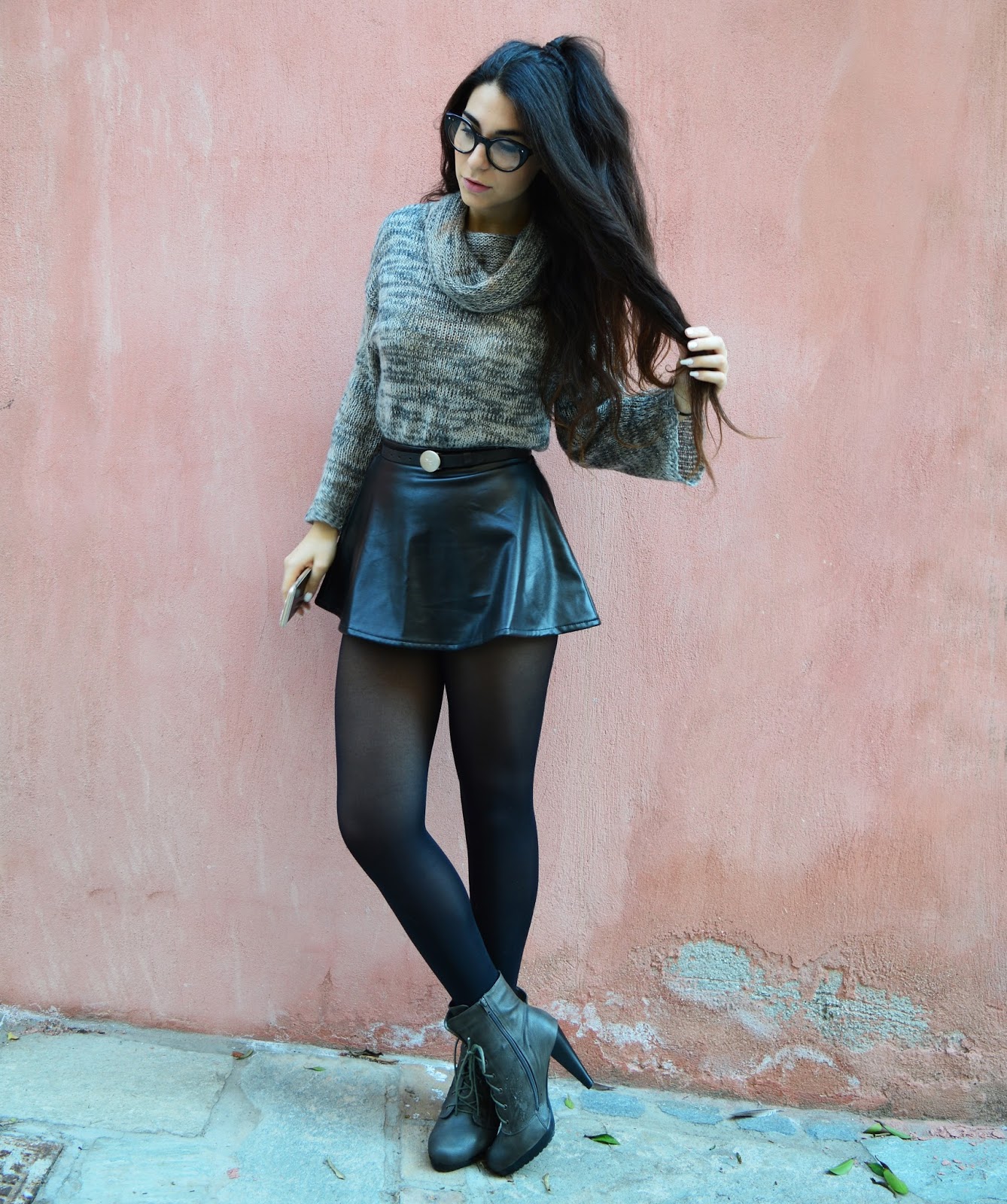 Hello Babes! This time my absence was the result of a really bad cold! I get these a lot during the Winter... So, today's post is all about that little geek we all hide inside us! I was having a conversation the other day and I was like ''Gosh, I'm such a geek'' and the person I was talking to replied ''You, a geek, have you looked at yourself?'' And suddenly I realised how stereotypes are still such a big part of our mindsets! A geek is nothing more than an enthusiast about pretty much anything... It can be science, video-games, music or in my case, fashion! Being passionate about what you love is nothing other than amazing... So embrace it! As for my outfit, I'm sticking with one of this season's biggest trends, leather, with this mini skirt and I'm so thrilled that turtlenecks are in because I seriously love them (and own so many of them! :P ). I'm also OBSESSED with my new princess case by the handmade Syawang.phonecases, I'm in love with it and I can't leave my phone without it! Winter and X-mas is just around the corner so... Freak out and remember: Geek is the new sexy!