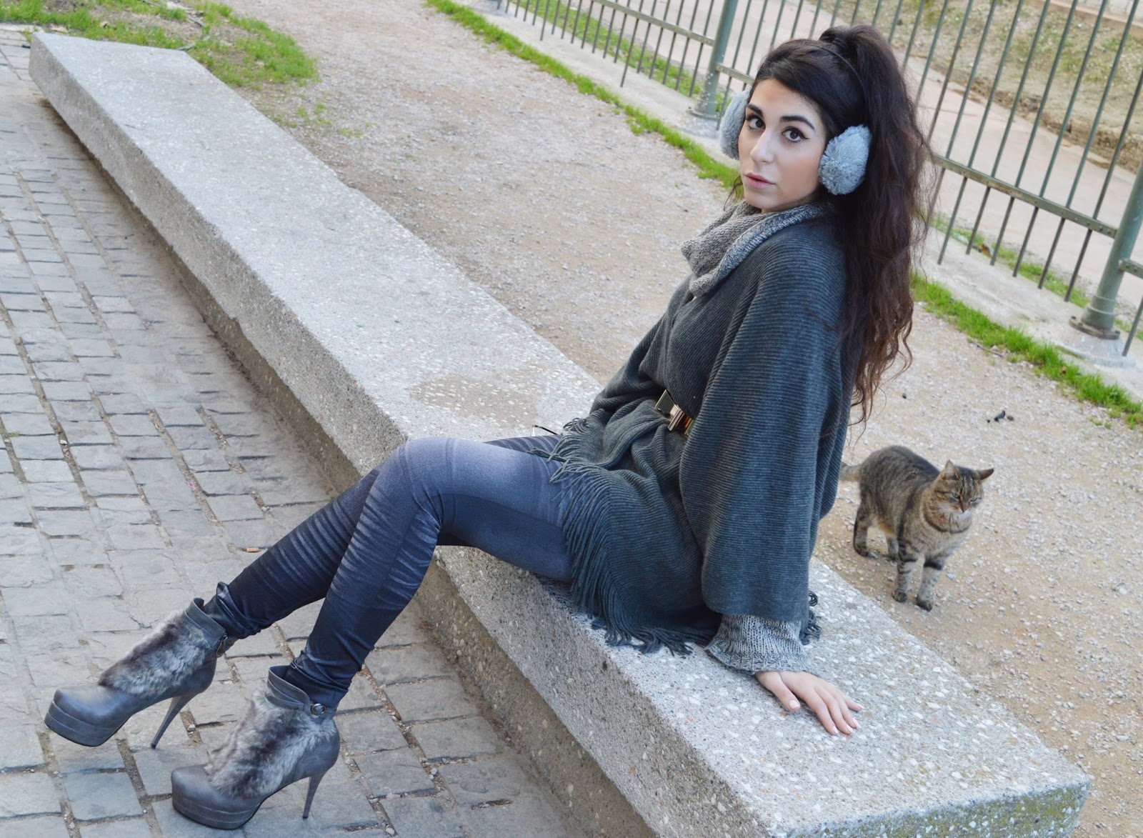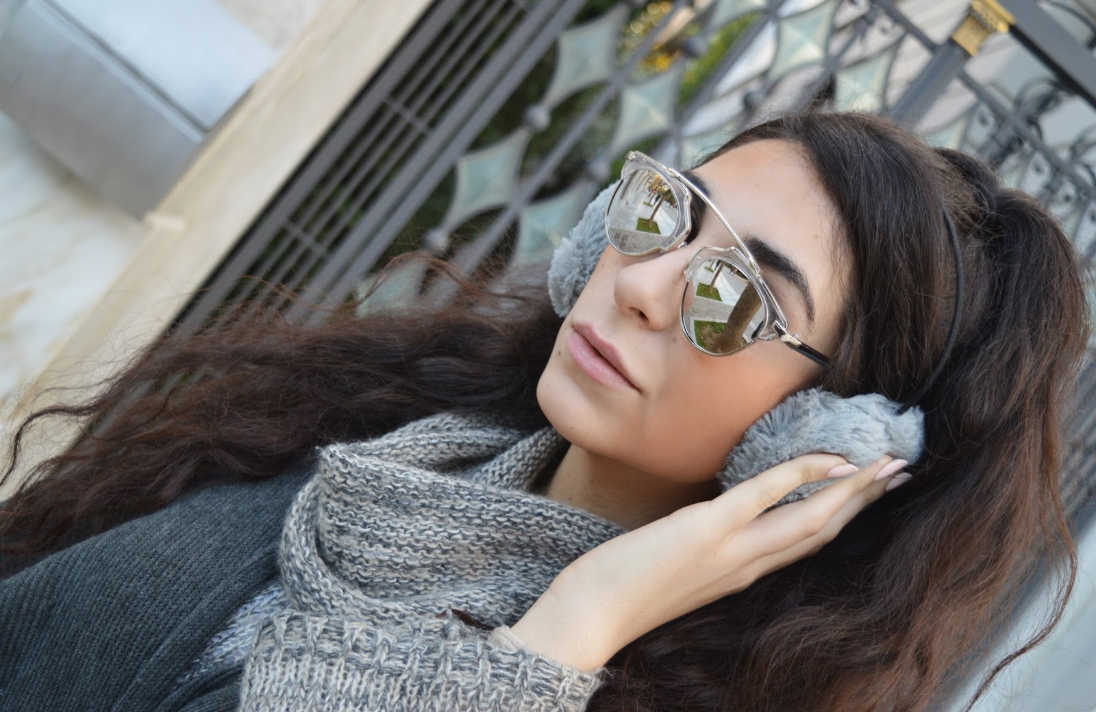 Sorry to hear you've got a cold - i've also got one, it's that time of year! I love this all-grey look on you, the ear muffs are gorgeous :)