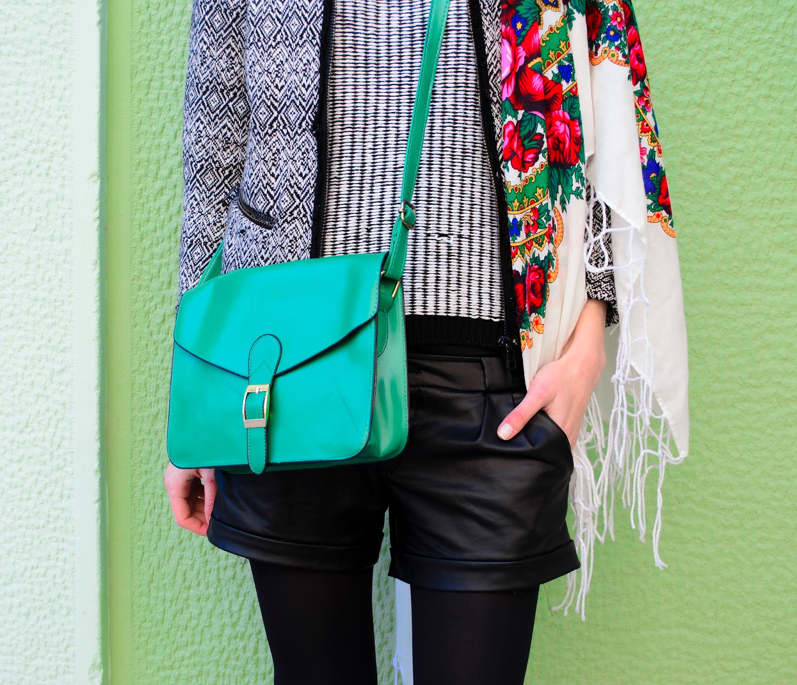 Great look sweetie, love the mix of textures and the scarf is gorgeous!