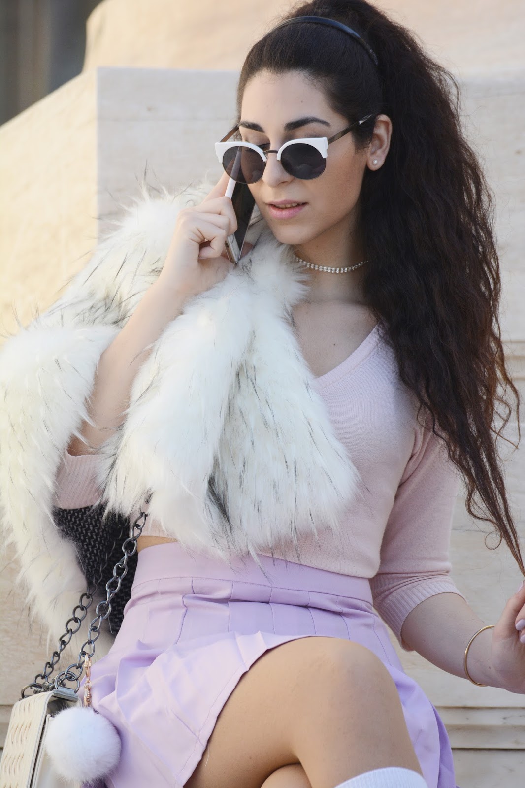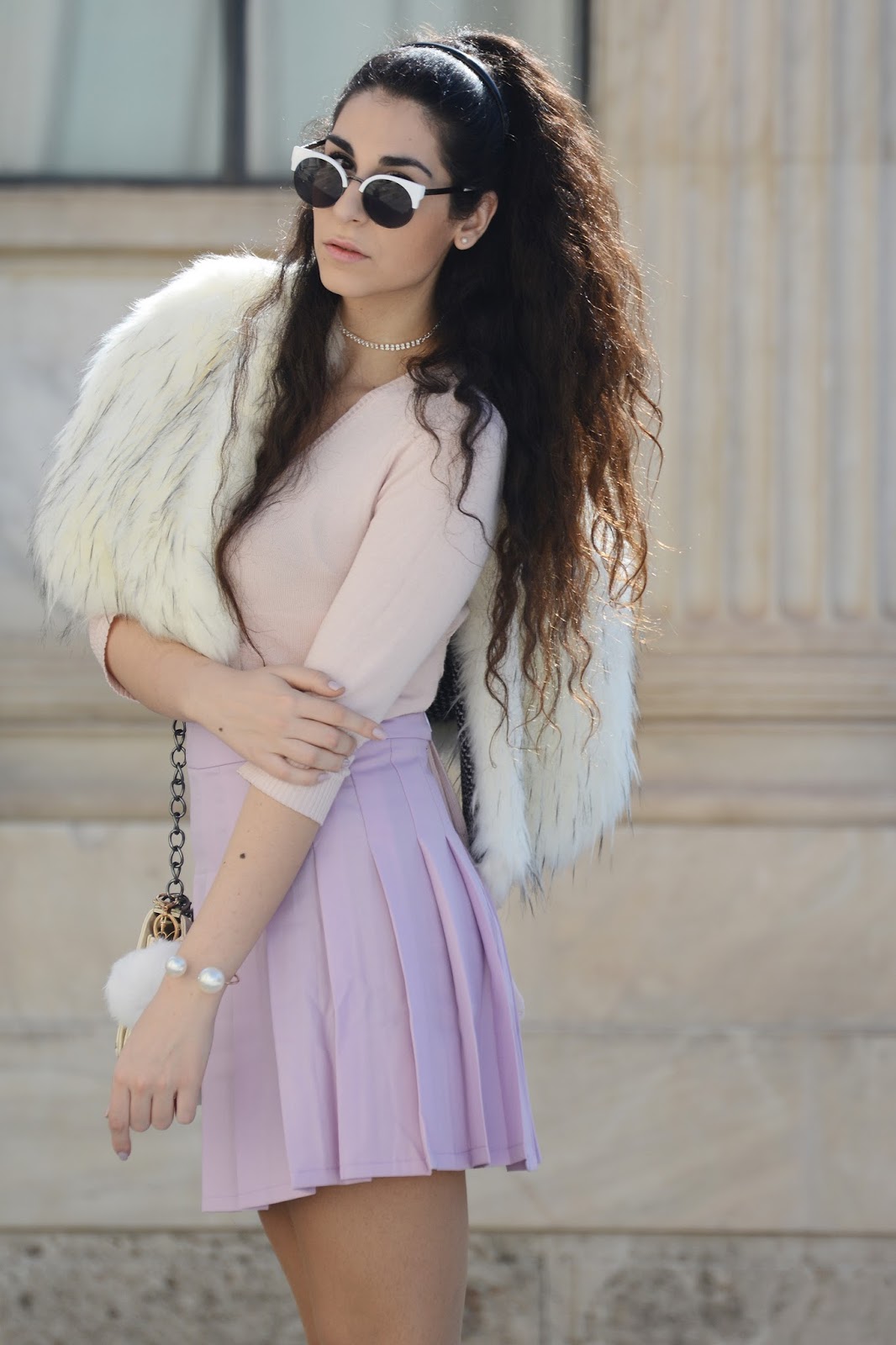 Hello babes! Scream Queens was one of my favorite TV series of 2015! Horror, comedy and total girliness was a great combo for my taste... And of course there's the style! Pastels are still one of the biggest trends right now and the Chanel's definitely knew how to rock them... The essentials in order to get their wardrobe are, faux-fur everything (mostly pastel), cute separates (such as my purple pleated skirt by Dressin), over-the-knee or knee-high socks and of course classic accessories such as pearls! Spoiled, rich girls attitude is mandatory if you're opting for this look... And of course the right lines... ''Good Morning S*&%s''!!! I love everything girly so this outfit was absolute heaven for me! Also, can we take a moment here and talk about how adorable my little, faux-furry, bag charm is? I found it on CNDirect and I've given it a name... Taffi! Yes... I'm that crazy, but hey, I own it!