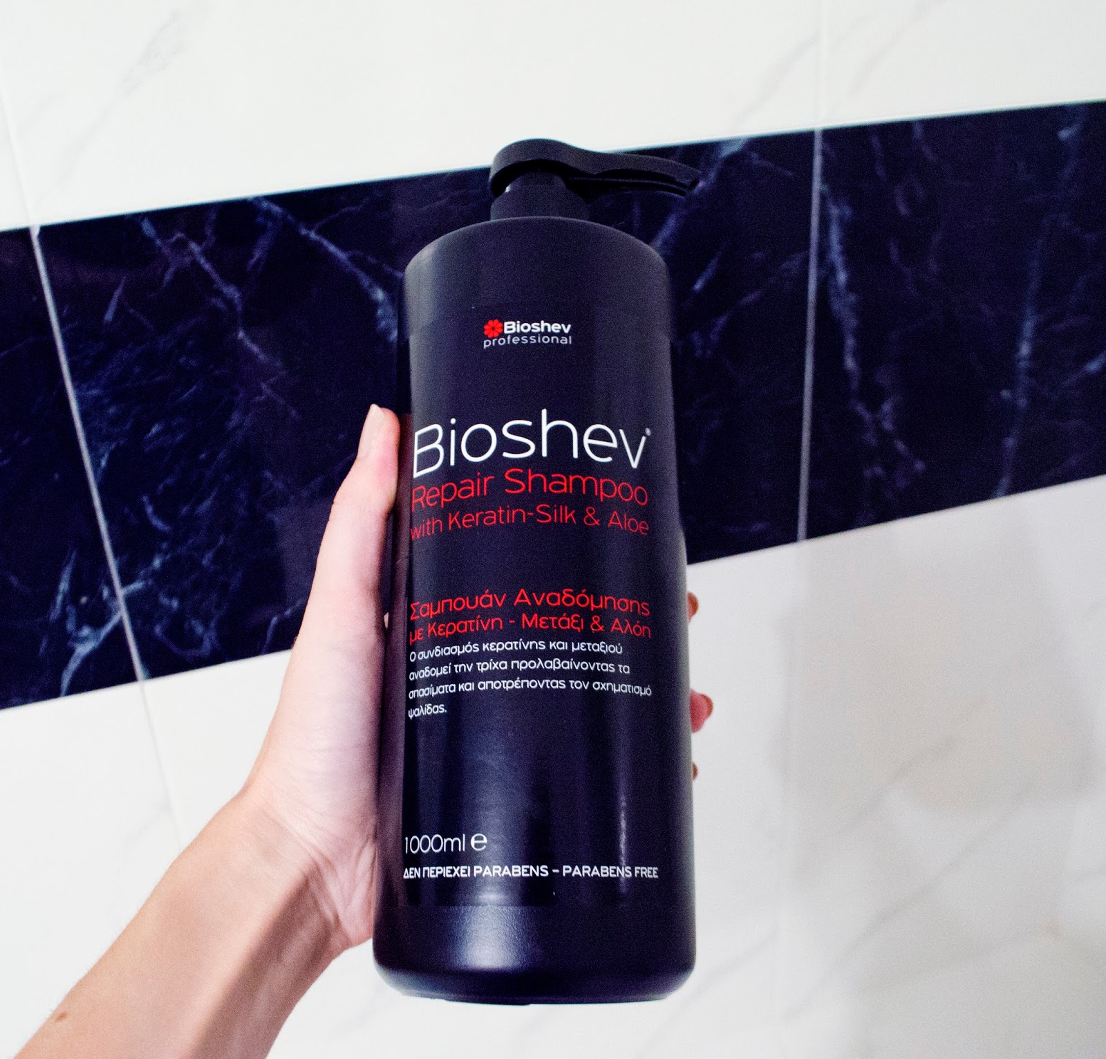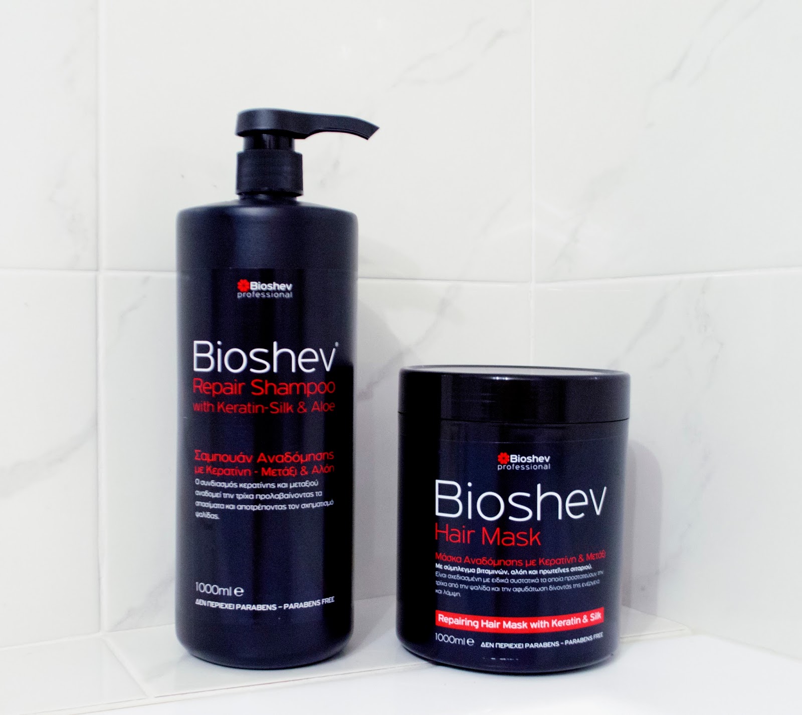 EN : Hello Litlle Bites! Here I am, with a completely different post :) Today I want to make a review on two products (shampoo and hair mask) from a new brand named BIOSHEV professional. Since I have bleached hair, it was a perfect opportunity for my hair to become silk and shine. I washed my hair two times with  BIOSHEV Repair Shampoo, which contains keratin - silk and aloe. I like its smell a lot and the fact that I kept my hair from getting tangled thanks to this shampoo! I have to admit, though, that I had a problem using the bottle, but in the end I managed to do it (yeah!). The most important for me is that it is paraben free and has keratin :) Then I applied the repairing BIOSHEV hair mask with keratin, silk, aloe, vitamins A, E and F. I think I left it for about 5 minutes and the beauty home treatment was over! Ι will use these two products again and again for better results!