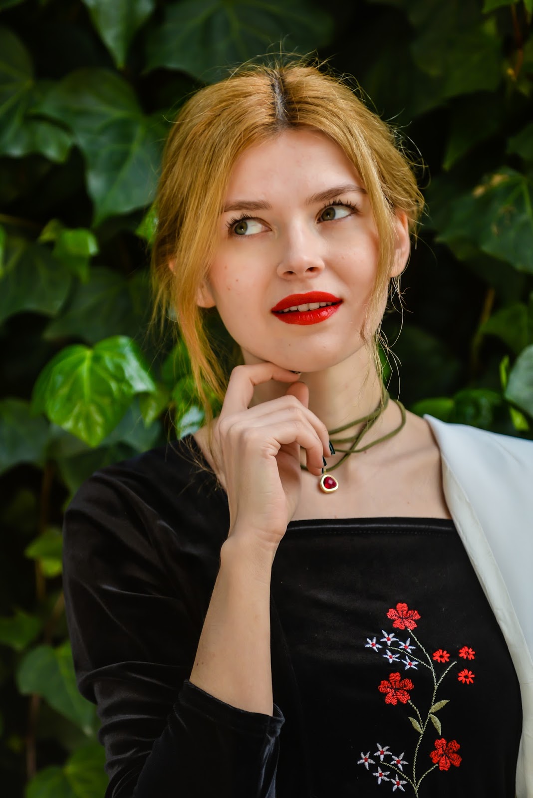 I know this greek brand for so many years! Kristia, the owner of the brand, started to love creating beautiful unique clothes and accessories from a very young age. It all started when she saw her mother drawing a flower and then she started to drawing too, flowers on clothing etc. . This time I wanted to show you this beautiful chocker with a lovely red stone as a detail. :)