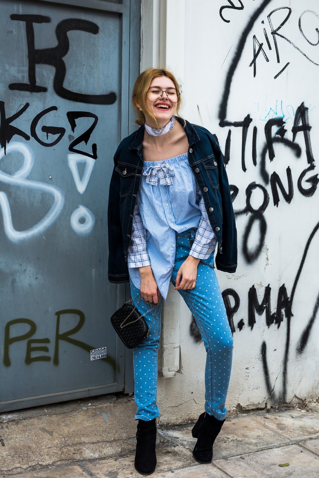 I am so excited to announce you my collaboration with my favourite brand BAZZ...R. I have mentioned in my previous posts, that it has kilo shops with a variety of beautiful clothes for every taste, body shape and age. It is the biggest kilo brand in the Greece! There are 9 spots in total, where you can find these clothes. Each of them is over 300 sq.m and not only sells women clothing, but also clothing for men and kids ;) What I like most about it is that there are very low prices and everyday you can find over 1500 new items. So, the past Saturday I decided to visit BAZZ...R shop in Kalithea (region of Attiki) for the fourth time, to pick some stylish pieces. I was really happy about the fact that I found so many great items and that the staff was super polite. This time this cool pair of jeans and this denim jacket I am wearing are from there. In my next posts, you will see what else I chose from there, so don't miss any of them :D