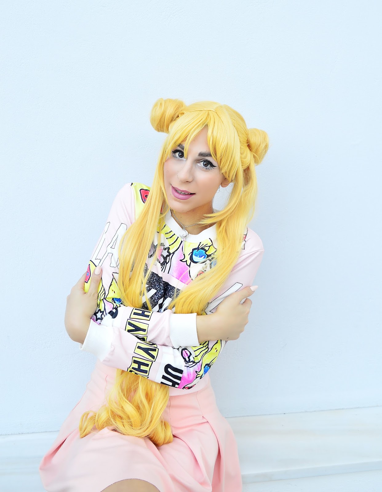 I’m Usagi Tsukino and I’m a 14year Old middle school student, I’m a Cancer with bloode type 0, my birthstone is a pearl and I’m a bit of a clutz, some people might say I’m also a little emotional… One day this strange cat named Luna appeared, turned me into a guardian in a sailor uniform and told me I had to fight bad guys, boy does that ever make me nervous, but I’m sure it will all work out fine! Well, I’m not, I am Marina but today thanks to RoseGal, I get to be her for a little while… Apart from my super cute outfit, I also got her hair… Recently I’ve been experimenting with wigs and when I saw this SailorMoon wig, I just had to have it… The iconic Odango (bun) hairstyle is finally mine and this wig is cute, affordable and perfect for cosplay! My unbelievably cute sweater, that really matches the theme, is also by Rosegal and it’s so Kawaii… Usagi would totally don that… My amazing necklace, that I wore as a choker, is a miniature of Sailor Moon’s first wand, the Moon Stick! Sailor Moon was my favorite anime and it really did define my childhood, so as you can imagine this post and all these beautiful things are really important to me… Since Usagi has blue eyes, of course I had to have them too… So, I’m wearing my Tri-Blue Adore Lenses by Lentiamo.gr. Lentiamo is a Greek, web-store that offers a huge variety of high-quality contact lenses (prescription, colored and Halloween). I’ve been a fan of trying different things lately, so if you’re also in for a bit of change, definitely check it out! Back to the subject of this post… Usagi (or Usako as her boyfriend and destined partner calls her), is the normal, everyday form of Sailor Moon and I've always felt so close to her… Like me, she’s a bit of a cry-baby, she really –and I mean really- loves food, she adores sleeping and her friends think of her as a bit of an air head… However deep down, she’s a hopeless romantic, a real fighter, a kind Princess a fighter and a true friend that would do anything for the people she loves… She sees the good in the bad and has a heart of gold! And yes… I think we have a lot in common! But aren’t we all misunderstood from time to time? And don’t we all wish people could see the real side of us, instead of everything that’s apparent? I think, yes… So next time you feel a little blue or down, see the bright side, look up to the moon, yell MOON PRISM POWER,
