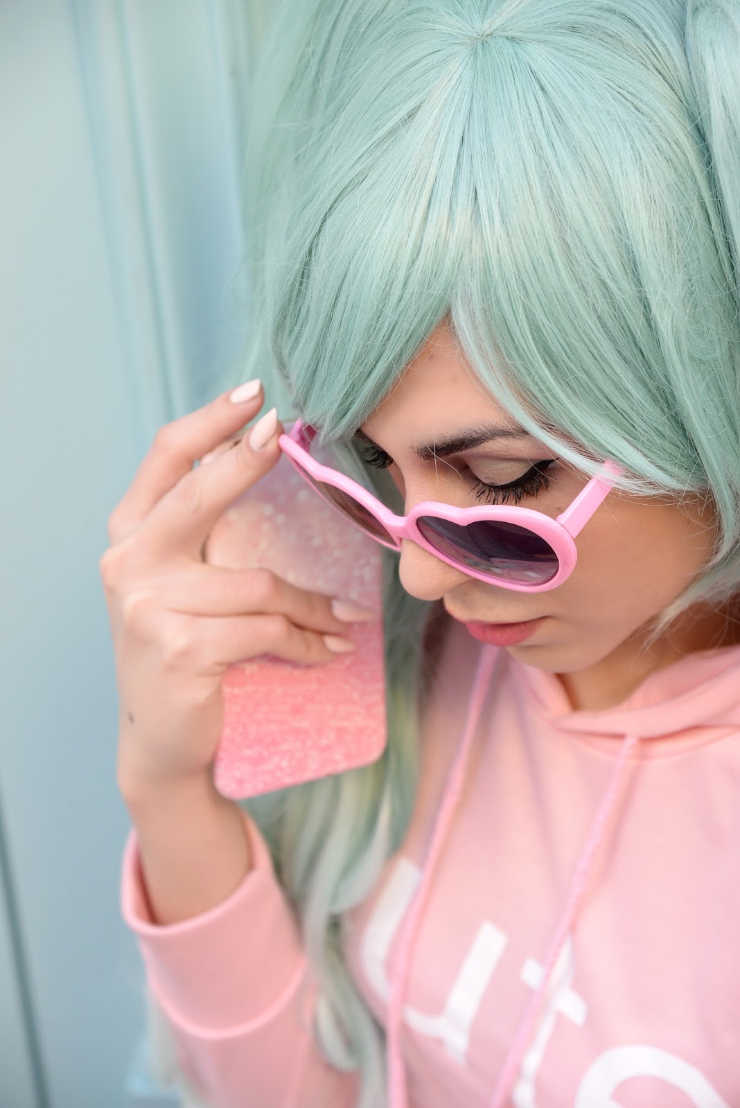How cute is this look, right?? I’m usually not the one to go sporty, but this cute Hollow Out Hoodie Dress stole my heart forever… I wore it as a top because *cold* but I loved it so much and the open shoulders just gave the whole look a frisky touch! I spotted it at www.lupsona.com, where you can find amazing sporty and sexy pieces in unbelievable prices… The rest of my outfit is pretty basic and simple for me, but I love it for everyday! Of course I had to make it extra… Let’s talk about my new wig! I’m in love with my Vocaloid Hatsune Miku Wig! It is for cosplay based on a manga character, however I used it as part of the look, since you know it’s mint and cute and has pigtails! Hihi!! You all know how much I rely on wigs lately for trying different looks… So, if you are ready for a fun change too visit StarLight Wigs for more cosplay, lace-front and simple wigs of amazing quality and affordable prices! I’m also loving changing contact lenses, so this time I’m wearing my new O-Lenses Caribe Con- Pinkcircle lenses… They are a bit more subtle than the ones I’ve tried before and they accentuate my brown eyes by giving them a more natural, pink-ish hue! I’m really digging the look! For more circle lenses you can click on PINKICON. I loved the mint-pink combo of this look and as you can clearly see, I’m totally matching my background… the whole thing was really random but I loved, loved, loved the result! Responsible for that result is, once more, Achilleas Vogdanidis of Vogdanidis & Sons Photography- Cinematography! I’m so thankful for the cute, bright and dreamy photos he once more provided for me… If you’d like to capture your special, colorful and magical moments such as weddings, christenings, family occasions, events etc. Click on www.vogdanidis.com and make your moments last forever! Btw, let me tell you, people were passing by all the time, asking for pictures with us and asking us what we were shooting for… It was a bit cute, but surreal as well… hihi!! I hope you liked my look and until next time, be pink, be you, be CUTE!!