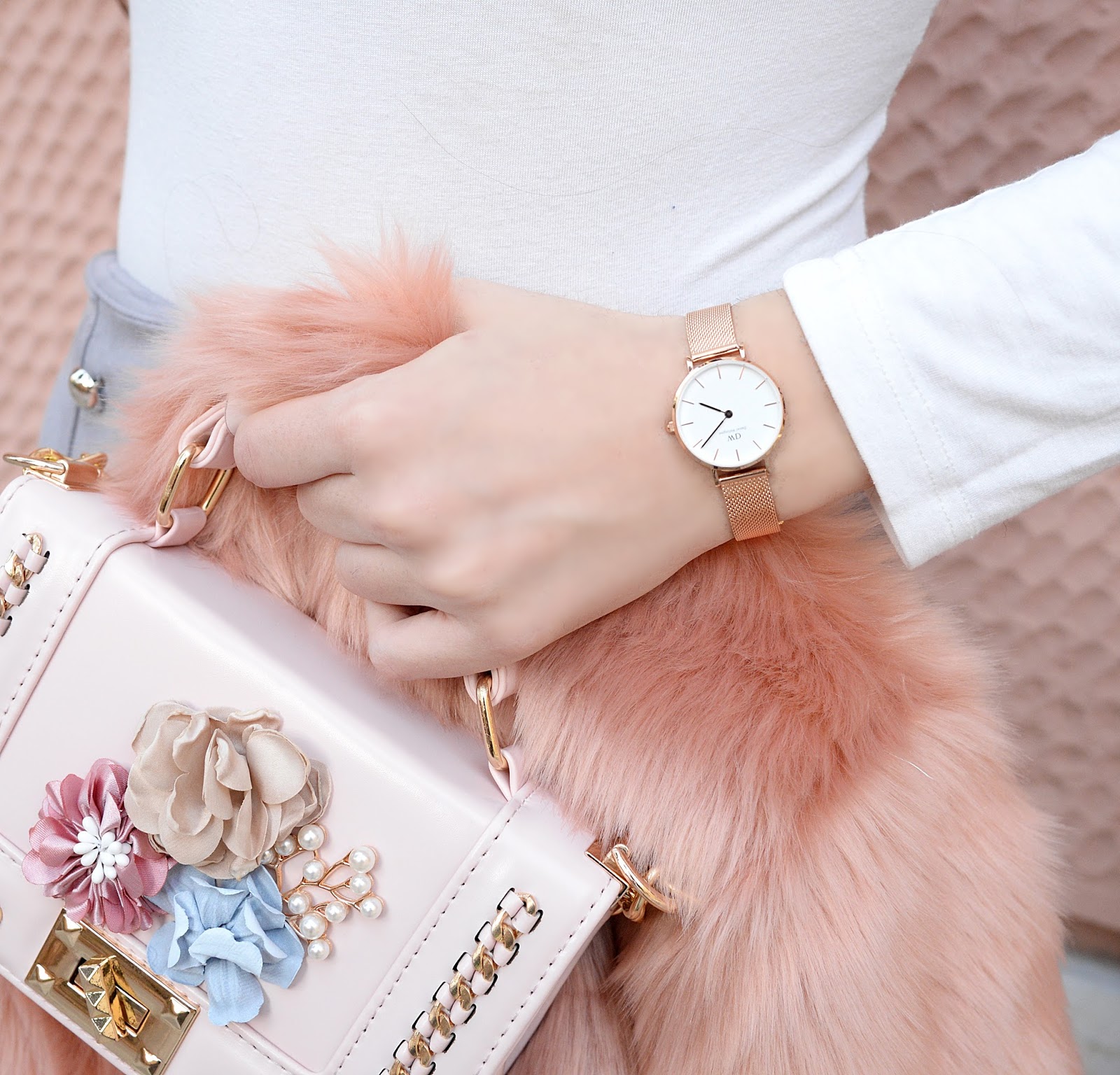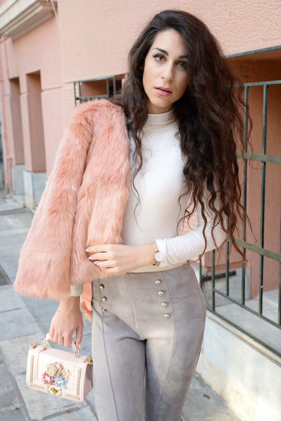 New week, new look! Since, I’m always doing crazy, fun looks, this time I decide to take down a notch -ok not for long- and show you a more subtle and chic look… Still with my favorite pastel colors of course… My outfit, including pink faux-fur jacket, grey faux-suede pants and my grey faux suede boots are all by Chic Me! A paradise for amazing, form-fitting, trendy clothes, shoes and accessories that are really affordable! Because trust me, you don’t need a huge budget in order to look elegant! It’s all about your sense of style and smart shopping choices… All of these pieces had me amazed by the quality… The feel of the faux-fur and the suede… I’m simply in love! As for the accessories, I’m wearing my all new Classic Petite Melrose watch in rose gold by the amazing Swedish brand, I’ve been loving for years, Daniel Wellington! It’s classic and fabulous and matches anything you’re wearing adding a touch of class… Not to mention what a great gift it would make, now that the holiday season is upon us! If you want mine or any other DW baby of your choice, head to www.danielwellington.com and use my code ‘’BITE’’ for 15% off!! There’s also free shipping worldwide! I’m also holding my new Flower Bead CrossBody bag by RoseGal, one of my favorite web-stores that’s perfect for smart shopping, since everything is affordable but of great quality and style! Let me tell you, this bag looks like a work of art and it’s just soo perfect… I’ll be wearing it all the time and I just can’t help but staring on it all day! The quality is also great, it has the feel of really expensive bag… Needless to say, I’m also in love!! Since this ensemble was a grey/pink combo, I decided to pair it with matching eyes… I’m rocking my new Princess Pinky Sensual Grey Circle Lenses by www.pinkyparadise.com and I must tell you, after trying blue, green, light blue and pink… This grey has to be my fav look yet! It just matches my skin and hair so well, giving a sensual gaze with just the right amount of innocence… I love it! The quality is amazing, since they feel great in my eyes, not tiring them at all and I think I’ll be wearing them a lot, since they need replacement yearly! Head to the website where you can find tons and tons of cool contacts to change-up your look… But always be careful with the cleaning process and the storage, in order to avoid bacteria and possible eye infections! Contacts are a fun way to change up your look once in a while, but vision comes first! As for the fantastic photos of this post, well once more I have to thank the talented, Achilleas Vogdanidis of Vogdanidis & Sons Photography- Cinematography for capturing these beautiful shots and helping me create an amazing and complementing result! If you like what you see, head to www.vogdanidis.com and create your own beautiful memories, with the help of their skilled techniques! Wedding, christening, family moment, special event… You name it! I hope you liked this look and I can’t wait to read your thought down below in the comments… Until next time, stay chic, confident and true to yourselves!