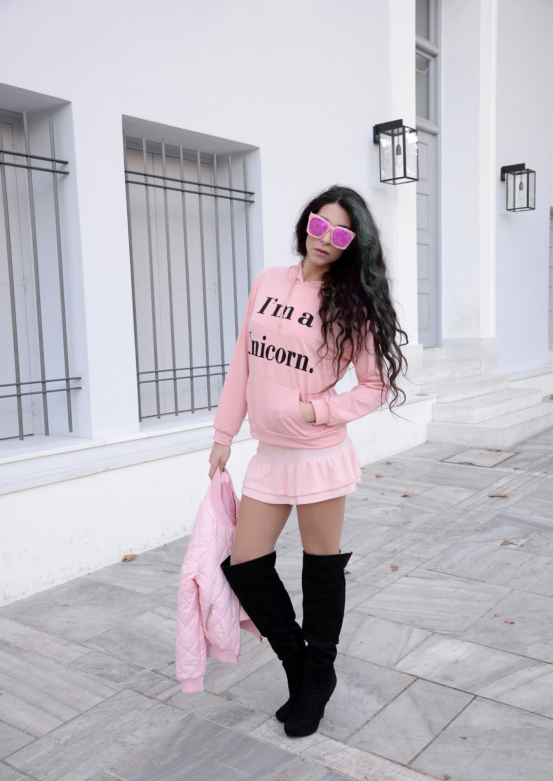 It’s time to let you in on a little secret… It’s true, among other things I’m also a Unicorn!! :P Well technically not, but I’m definitely unique, as we all are… Most of my super cute, pink outfit is by ZAFUL, one of my fav webstores that offers the most on-trend pieces in the most on-budget prices! When I spotted this amazing Unicorn Hoodie, I fell in love and I immediately had to have it… I mean, the hood actually has a horn and cute ears, what was I supposed to do? Resist? No way honey!! I paired it with my all new, Pink Quilted Bomber jacket, my awesome Pink Mirrored Sunglasses, a mini skirt and the all-time classic, over the knee boots… Creating an amazing girly but a little sporty combo! I’m so in love with this look and I’m also so in love with the photos of this post… Achilleas Vogdanidis of Vogdanidis & Sons Photography& Cinematography brought his A-game and once again the results are astonishing! If you want your unique moments (weddings, christenings, family occasions, special events etc.) captured, click on www.vogdanidis.com and let the magic begin… Speaking of magic, it only happens when we embrace our uniqueness, including our faults, since they actually are exactly what makes each one of us different and unique… Until next time, always remember to shine, to give your 100% and to be yourselves… Unless you can be Uniqueorns, the be Uniqueorns!!!