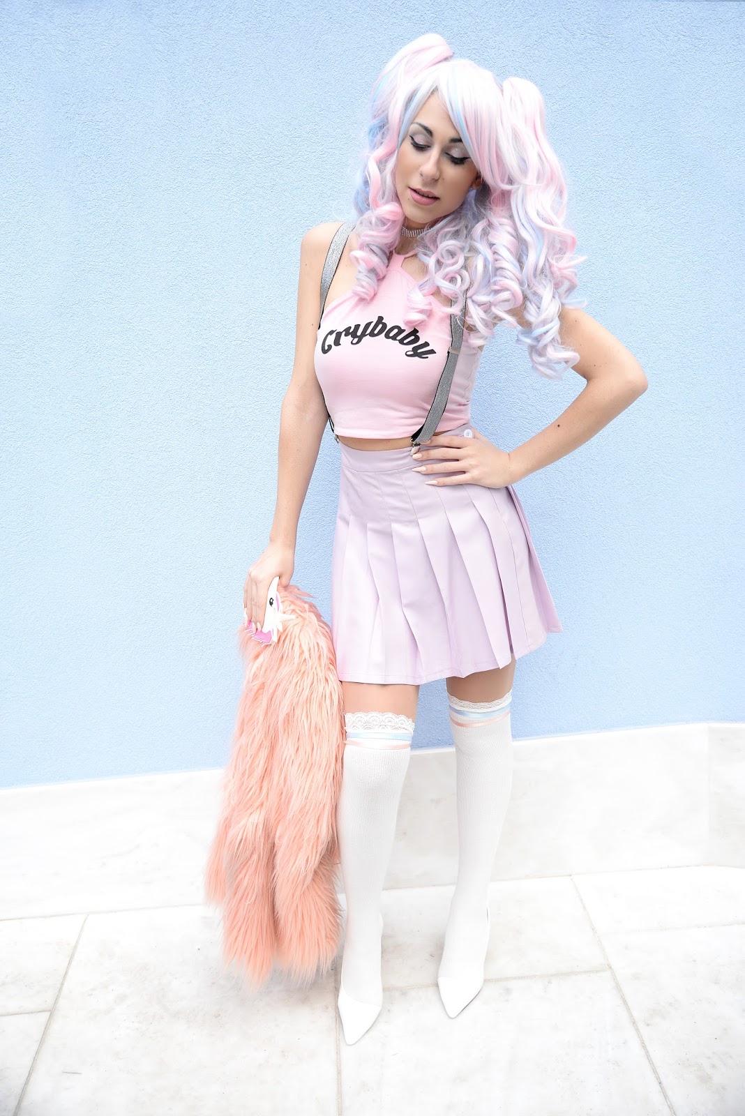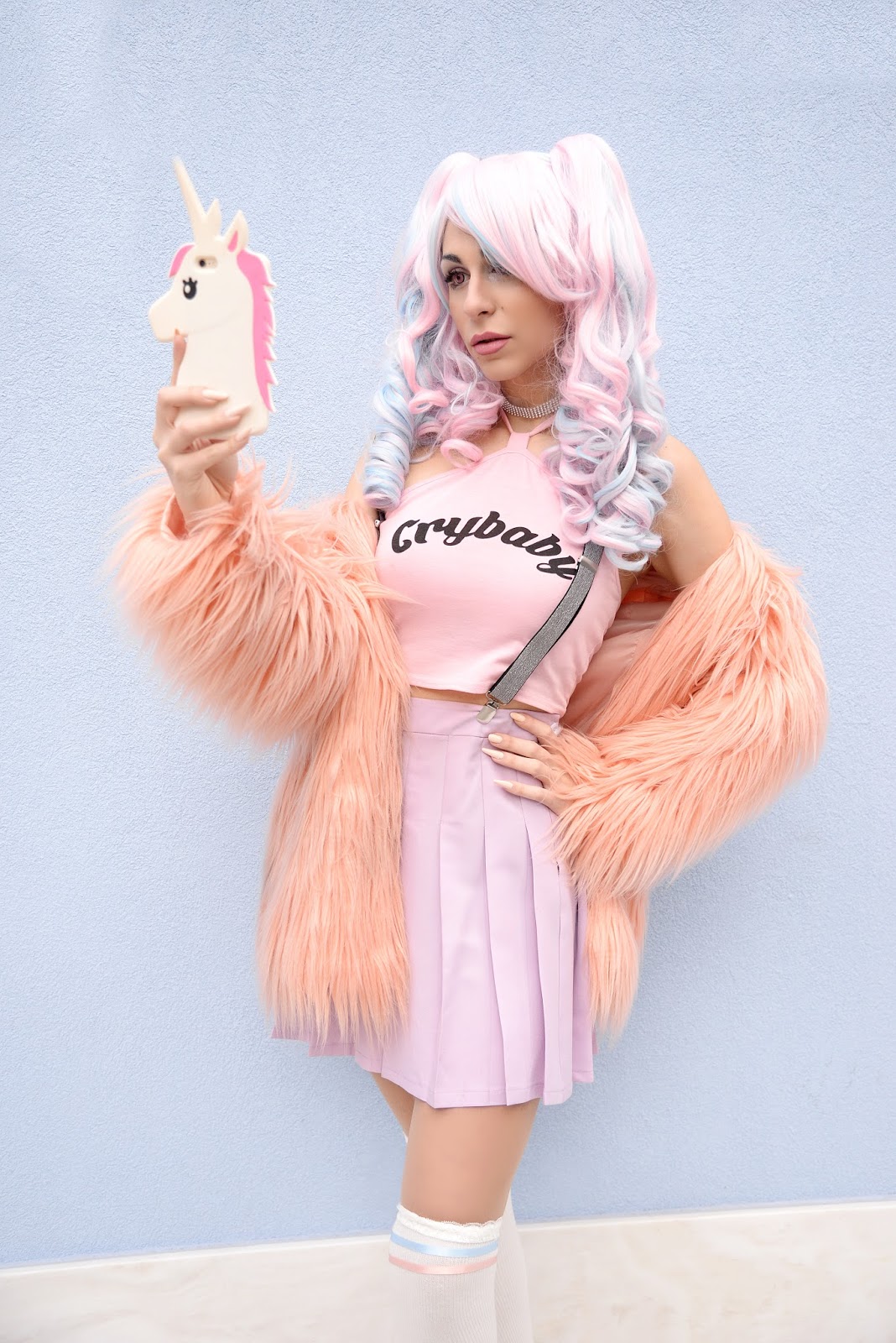 I am a bit of a crybaby and I cannot lie… I’m also part unicorn… hihi! Today’s look is majestic and I’ve been wanting to do it for quite some time, so once the weather gave me the chance, I jumped to the opportunity! I’m in love with my crybaby crop-top and suspenders by Zaful (Zaful Valentine' Day Sales). Both of their the quality is amazing… I hadn’t trie suspenders before, but I totally loved them! Great way to keep your bottoms in place, while also adding style and pizzaz to any look, especially if they are glittery ones like mine… As you probably have noticed, I love anything thigh-high, so I’m thrilled with my new, over-the-kneesocks by RoseGal (RoseGal Valentines Gifts). Since I really had a hard time finding any that were actually reaching up, above my knee! It can be a problem, cause of my height, but this pair was just right… This outfit is one of my most ‘’extra’’ ones, but I’m completely in love with it! The combination of pastel pink and blue is simply so cute and in this get-up, my inner unicorn was unleashed and full of happiness! The oh-so-adorable photos were shot by the truly talented, Achilleas Vogdanidis of Vogdanidis & Sons Photography- Cinematography! He got the vibe I was going for and captured it perfectly… If you’re looking for your own fantastic shots click on www.vogdanidis.com! They specialize in christening, wedding, event, interior photography etc. And the results never disappoint! I’m truly excited with how this post turned out and I hope you are too… Let me know your thoughts about it, down below in the comments and don’t forget to follow me on instagram for more magical moments and pics! Being a crybaby can be considered annoying for some… Expressing your feelings though, whatever these are, is freeing and we should never hold it back! Until next time, cry, laugh, shout (and since today is Valentine’s Day) Love your heart out while always remaining the cute, little unicorn you are!
