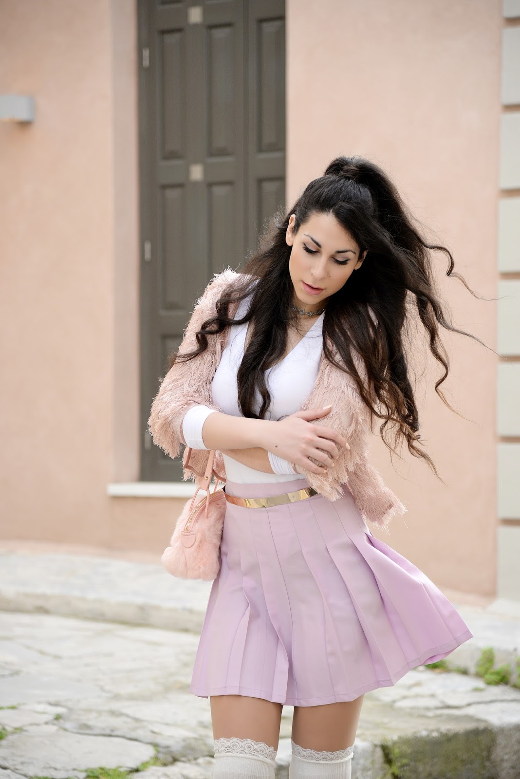 Today’s look is obviously an ode to my favorite pastel colors… You can see lavender on my skirt, beige on my amazing, fringed jacket and pink on my shoes and faux-furry bag by Zaful! Of course I used some white as a base, on my white bodysuit, that’s really perfect for any look! Another thing that’s beautifully violet, is my eye color, since I’m donning my new violet contacts by www.alensa.gr! I’m living for the whole preppy vibe of this outfit… I adore these kinds of looks and they make me feel all cute and ‘’spoiled’’... Don’t we all deserve to be a little spoiled, from time to time? Oh yes we do! The photos by Achilleas Vogdanidis, (Vogdanidis &Sons Photography- Cinematography) are simply dreamy and I’m so thankful to him, for always giving me top-notch results! For your own amaze photos, click on www.vogdanidis.com (wedding, christening, event, interior photography etc). Let me know if you loved this get-up as much as I did, down below in the comments and don’t forget to follow me on instagram for more sparkly, pastel photos… Until next time, love and pamper yourselves as much as possible! You deserve it!