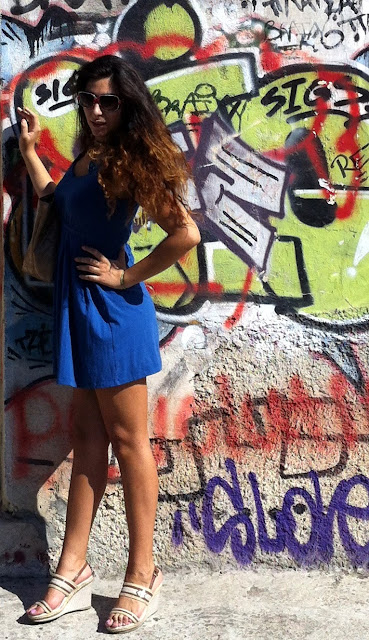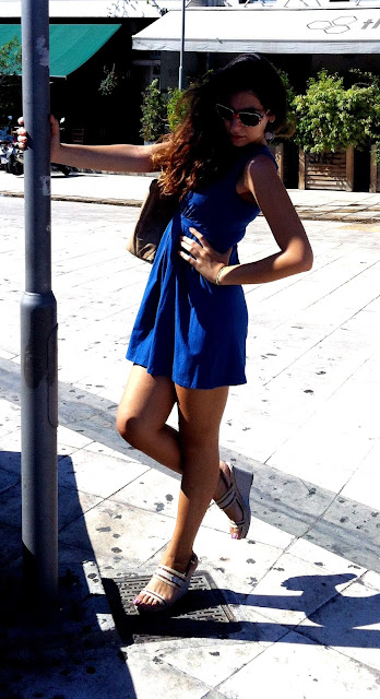 Hey ya all ! For this look I went for this gorgeous blue sundress ! Sundresses are perfect for the summer! They go perfect with sandals,flip flops and they are not only gorgeous but really really comfy! I also chose wedges (as per yousual ! ) It was the perfect look for a walk in one of the city's most central areas where people from everywhere gathers and it's one of the most urban ones as well! Also If you like I have gone for the ombre trend in the hair this blue is a perfect match... the color combo is just great! really makes it pop!!!