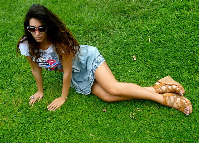 Fall is here and each year this time I always think of London ! You see now that it's kinda hot during the day and chilly at nights , it reminds me of summer in london ! Which is not so cold and rainy , but still cloudy and kinda chilly ! Anyways inspired of London I put together this week's outfit ! This top was actually purchased by a local store in London while I was there.. It's not a crop top but I kinda made it into one! I thought it would totally match the skirt.. and let's face it.. Crop tops are hot as hell right now ! I also choose this cardigan and I actually think it matched my shoes !! yayy ! As for the accesories I kept it really victorian themed ! cross & royal symbols.. How very london of me right ( ! ? ) The photoshoot took place downtown Athens at ''the freedom park'' ! I think that the scenery really resembled London ! And let me tell ya..the weather did too! One minute the sun was out and about , next minute.. BOOM ! Hello clouds! That made the photoshoot a lil' bit trickier, but everything went well eventually ! Don't forget to check out this look on lookbook : http://lookbook.nu/look/5386228-Sprider-Skirt-Guru-Sunglasses-H&M-Earrings