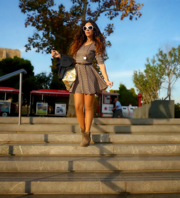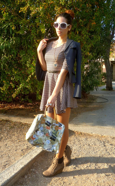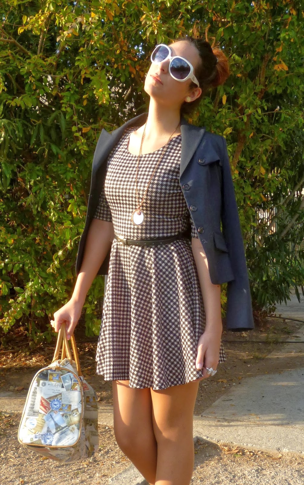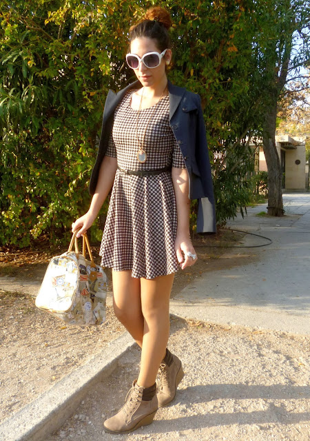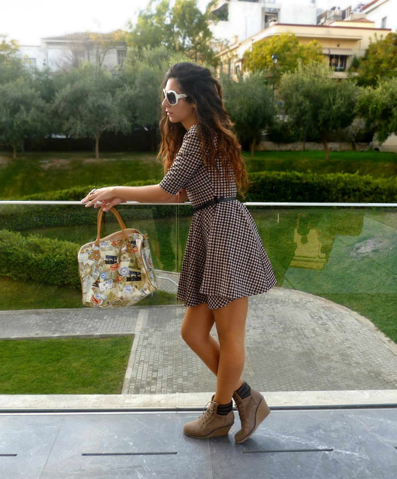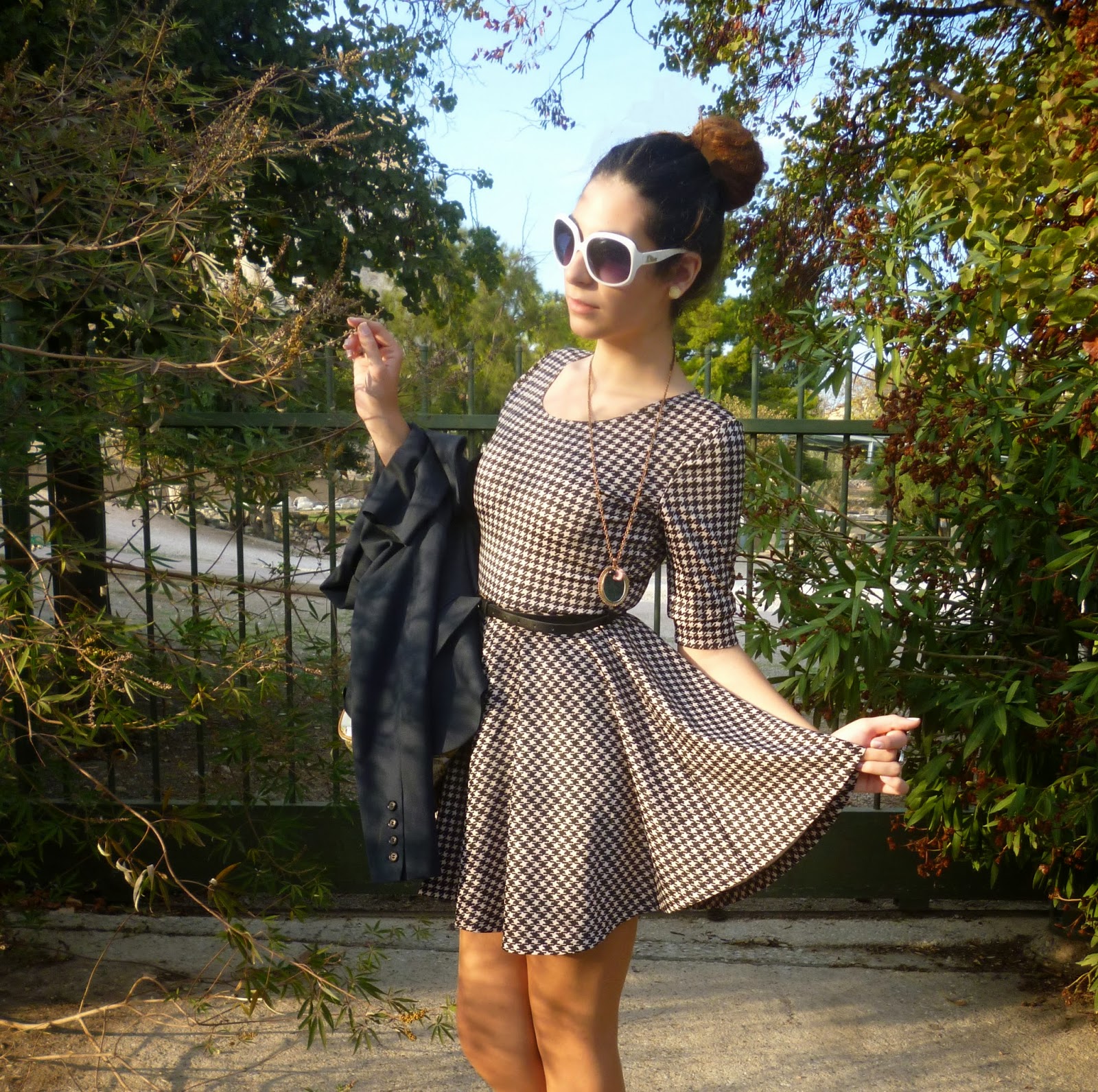 Anyways this print which is called pie-de-poule is huge this season! This skater dress is so classy and so Chanel like ( and I love Chanel). I paired it with a cute basic blazer to make the look even classier. I think this type of dress is perfect for showing off your waist and I think it really compliments the female body, in the most elegant way. Slim belts are also really in! Of course I had to give some contrast..so I combined the whole outfit with wedged booties, instead of going for classic pumps! Comfy but edgy as well..