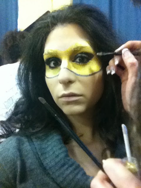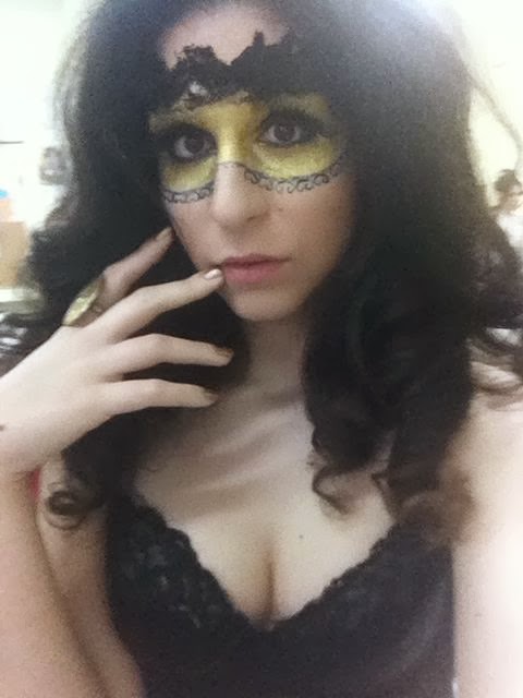 The look was inspired from the Victoria's secret fashion show. Only with a masquarade twist! The tones where gold n' black and these colors are really in till this day! My make-up was done from this fabulous girl http://www.facebook.com/vaso.loulou.9. I thank her so much for this great look! Gold, glitter and lace (! ?) made the perfect combo on this make up mask!
