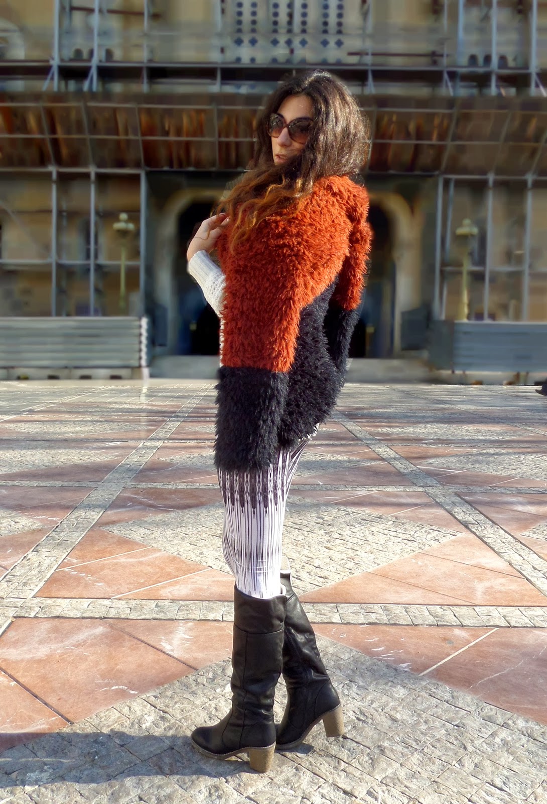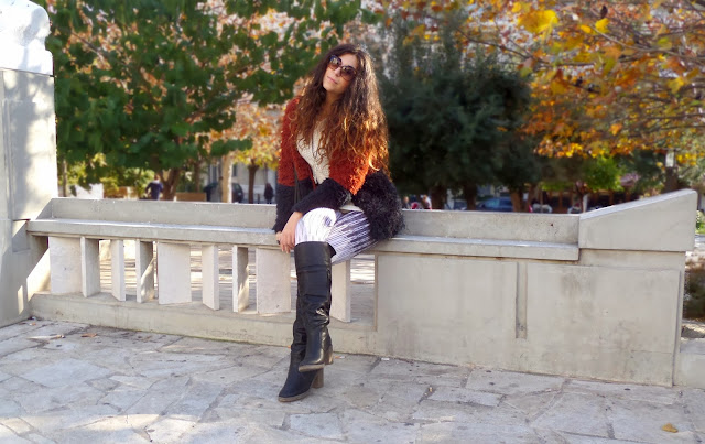 Xmas is over and New Years Eve is right in the corner, so a super Xmas post was really needed! This week was cray cray... Events, happenings, shopping, outtings, I was always in a rush! But of course I had to make an outfit post.. Since it's such a festive time of the year I decided to add this ombre-like faux fur to my look for the extra glam we all need everyday. A girl needs to be glamed-up not only to parties and clubs! I loved the color combo and since prints are really in I combined it with these fab leggings and me new fav boots! I'm so into faux fur this year I can't even deal... It's fab! warm, super soft and really animal friendly while looking absolutely gorgeous! Hope you like it, let me know and I'm wishing you the BEST for the year that's coming... Stay Tuned and have fun
