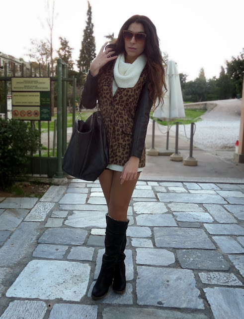 Τα Χριστούγεννα πια είναι πολύ κοντά! Τη προηγούμενη εβδομάδα ήμουν καλεσμένη στο Do it Eco tea party, για bloggers, στο ξενοδοχείο King George στο κέντρο της στολισμένης πλέον Αθήνας, ήταν υπέροχα! Περάσαμε τέλεια, μάθαμε πολλά και έφυγα με τρεις υπέροχες σακούλες δώρων! Πριν φυσικά κάναμε φωτογράφιση για το outfit, αν και είχε παγωνιά! Anyway νομίζω ότι το αποτέλεσμα είναι πολύ καλό! Όσο για το outfit αποφάσισα να δώσω λίγο edge με αυτό το λεοπάρ παλτό, το οποίο είναι πολύ in φέτος... Εγώ βέβαια είμαι καιρό fan του! Μ'άρεσαν πολύ τα δερμάτινα μανίκια που ταίριαζαν απόλυτα με την τσάντα και τις μπότες μου! Βασικά είναι το φετινό trend, άσπρο-μαύρο, με μια leopard twist! Περιμένω να ακούσω τις εντυπώσεις σας!
