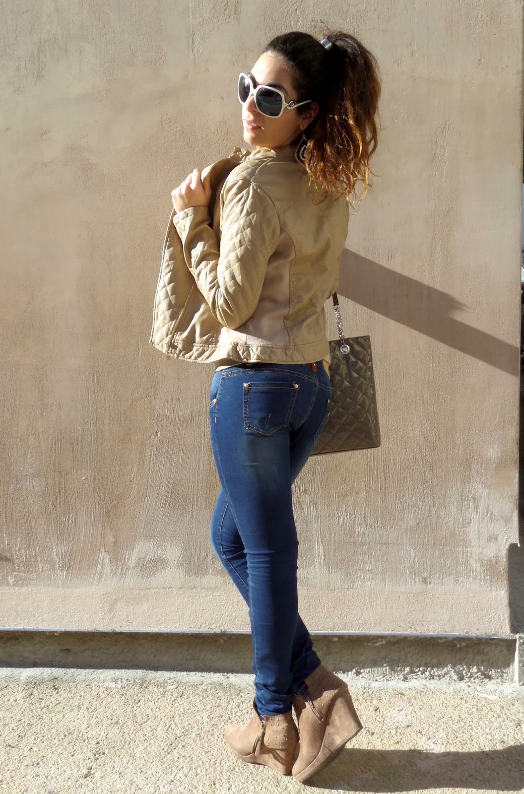 Hello my friends, as I like to say: Hold your head high and your hair higher! This time I decided to go for my favourite really high pony-tail, and I used my gold cuff for extra glam! As for the outfit, I'm in love with my new jeans, like seriously and I was so glad that the weather was better and I got to wear my fab new leather, cream jacket! I love it, love the colour, the texture, the quilted effect (which I love, and as you see it's also on my bag!) I love everything about it! As for the accesorizing I chose the color gold, cause I think it matches perfectly with colors like beige, cream etc. A perfect city look, for a perfect sunny day! Have fun everyone!
