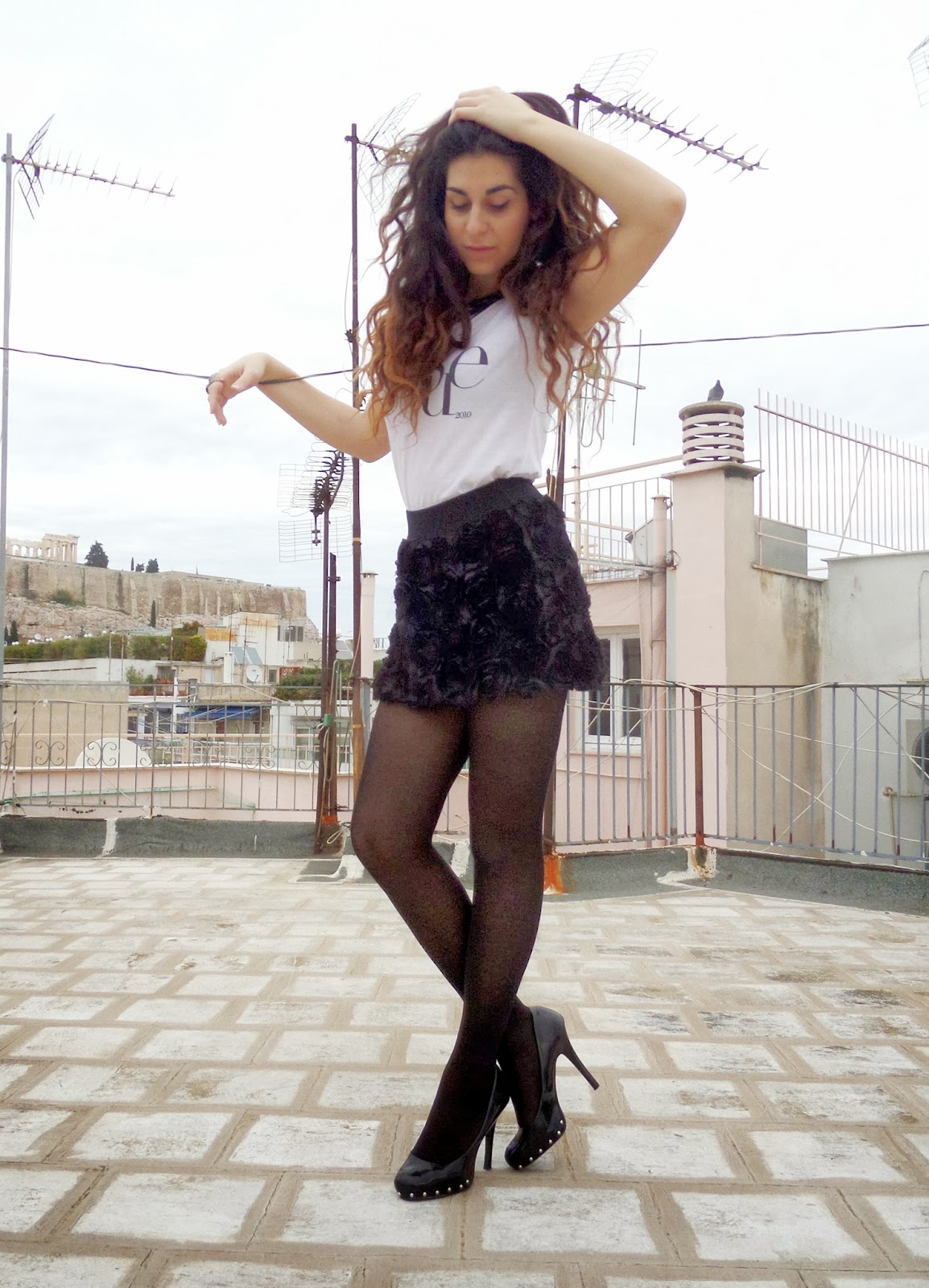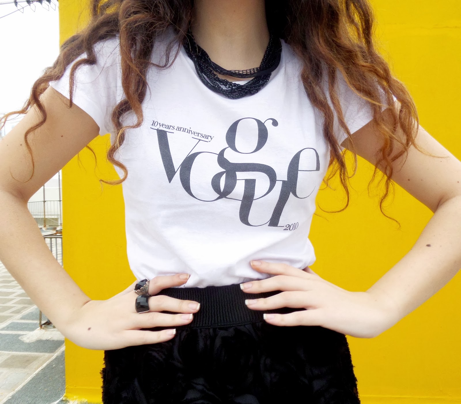Some may prefer Rock n' Roll, I on the other hand prefer Vogue n' Rose! And that's what this look is all about. This time I wanted a really feminine party look and I think I got it, I chose the absolut trend for this season black and white, I paired a really fluffy and full of roses skirt with a simple Vogue T-shirt (gotta love Vogue) and I styled it up with some bold accesories and... Boom: I have a party outfit that screams fashion! As for the party I attented it was the 3 years Posh party, by the fab Mr. Posh, Tasos Lazar, owner of the Posh Fashion Blog! The party was amazing from the music to the fab cocktails, so I thank him very much and wishing him the best... Since I was there with my girls after the party as you can see we stopped to grab some sweets, or all of them actually!!! Anyway, had a blast! Hope you are having the time of your lives, Stay Stylish!