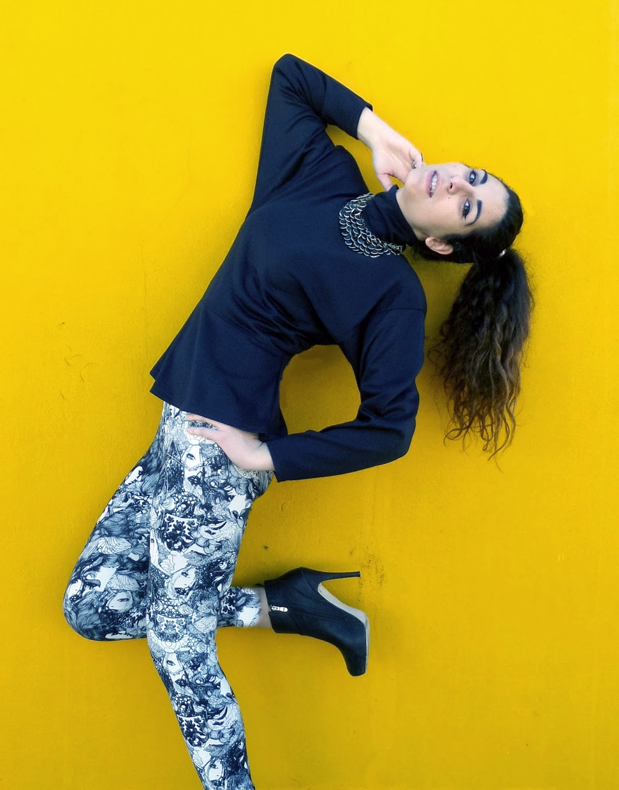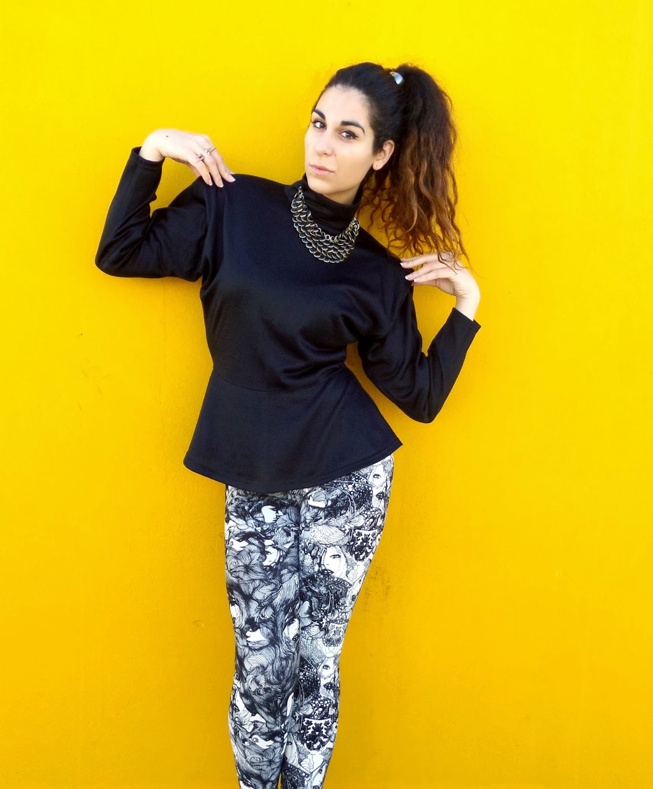 Ohh the 80's! Soulder pads, big hair, Cindy Lauper, Madonna n' Voguing!This time I decided to do a post-tribute to this fantastic era. A peplum, shoulder padded blouse, funky leggings, fab statement necklace and my (already) big hair was all I needed to make this happen. Shoulder pads may not be really in right now but I think they are complimentive, especially for the ladies that want to get that hourglass figure. As for the leggings, they are Vrettos Vrettakos, a very talented and famous greek designer. I totally loved the funky n' artsy print and I think we should all support our local markets! As you can see I couldn't help myself, I had to do the Voguing pose, the whole feeling of the shoot was fab, or should I actually say rad? haha. Hope you enjoy the post and let me know your thoughts on it! Have fun, have a good month and be... rad!
