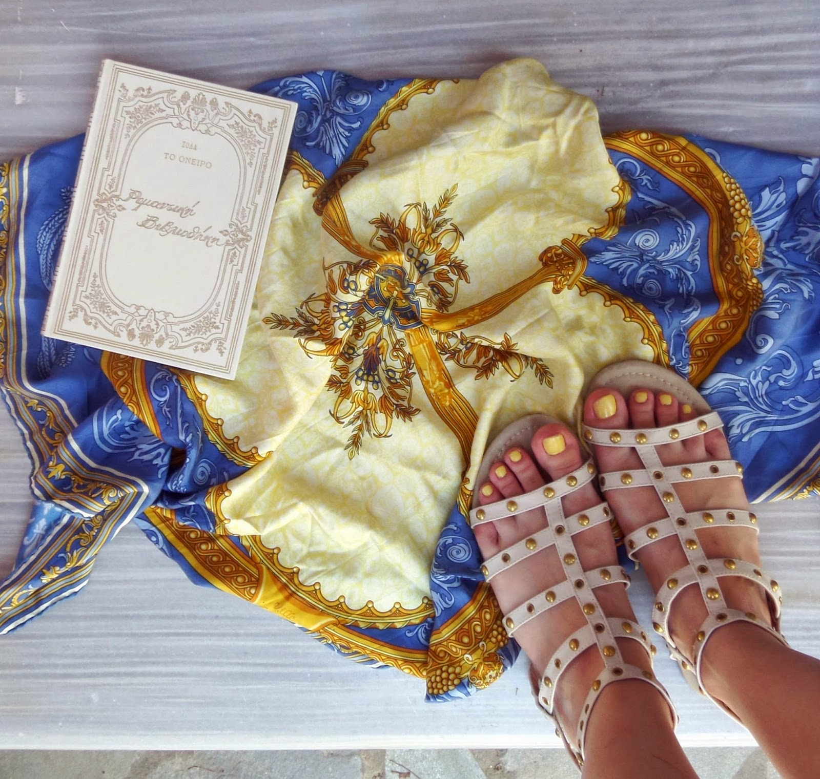 Γεια σας fashionistas μου! Άρχισαν επιτέλους οι καλοκαιρινές διακοπές μου, οπότε θα βλέπετε συχνότερα φωτογραφίες μας στη σελίδα μας στο fb :) . Μου αρέσει πολύ αυτό το vintage μαντήλι και έψαχνα καιρό πως να το συνδυάσω, επειδή είναι από μόνο του εντυπωσιακό φαντάστηκα ότι απαιτεί ένα πιο απλό ντύσιμο. Για "αξεσουάρ" επέλεξα πάλι αντι για τσάντα να κρατάω ένα υπέροχο βιβλίο, το συγκεκριμένο λέγεται "Tο Όνειρο" του Εμίλ Ζολά και σας συνηστώ να το διαβάσετε. Για το τέλος του post κράτησα τη ζωγραφιά της Paula Fleur από το INSPIRATION POINT για το blog μας και την υπερευχαριστούμε και της ευχόμαστε καλή συνέχεια :) . Καλά να περνάτε και περιμένω εντυπώσεις. Φιλιά :)