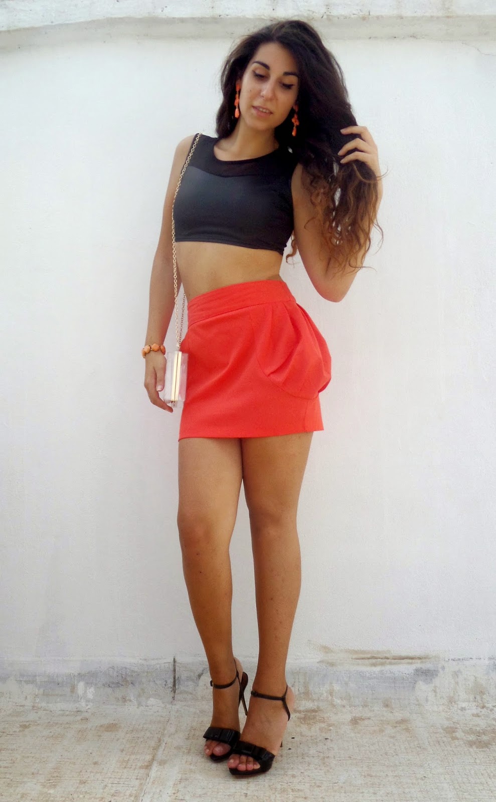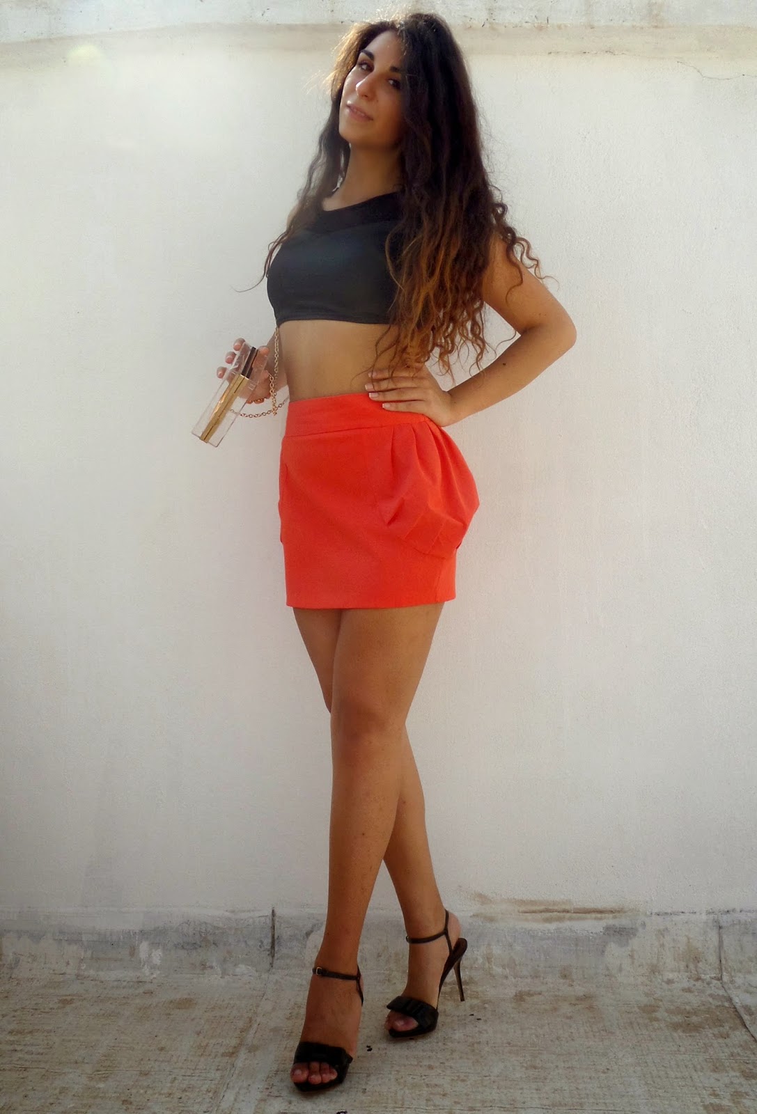 Hello Fashionitas! Το καλοκαίρι είναι η εποχή των έντονων χρωμάτων και των πιο απλών ενδυμάτων. Τι συμβαίνει όμως όταν θέλουμε να βγούμε έξω για ένα ποτό ή μια επίσημη εκδήλωση; Όταν θέλουμε να φέρουμε λίγη από τη λάμψη του χειμώνα στη καλοκαιρινή μας γκαρνταρόμπα; Είναι πολύ απλό! Το μόνο που πρέπει να κάνουμε είναι να διαλέξουμε κάποια βασικά κομμάτια σε χρώμα μαύρο, όπως το crop top μου και αυτά τα δερμάτινα, ψιλοτάκουνα πέδιλα που φοράω και να τα συνδυάσουμε με ένα πολύ έντονο χρώμα, όπως αυτή τη φούστα στο σχήμα τουλίπας, την οποία έχω ερωτευθεί. Το φετινό καλοκαίρι φυσικά, όπως έχω ξαναπεί, η καλύτερη λύση είναι οι ψιλόμεσες φούστες και τα crop tops. Με λίγα λόγια, φροντίστε να τολμήσετε αλλά χωρίς να υπερβάλλετε και είναι σίγουρο πως θα μαγνητίσετε όλα τα βλέμματα! Συνεχίστε να περνάτε υπέροχα και περιμένω τις απόψεις σας!