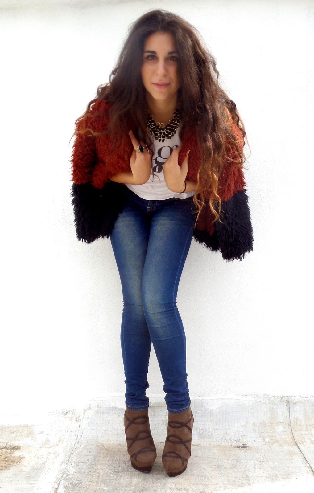 I don’t know about your area, but here it’s getting really cold… Winter is right around the corner and, truth be told, I’m not really thrilled. However, every season is beautiful and we always find a way to cheer ourselves up! My antidote for the bad weather and the cold is a fabulous wardrobe. So for this week’s outfit, I’m wearing one of my favorite Faux-Furs and I’m feeling really glamorous! Faux-Furs are perfect for looking chic and stylish, without hurting innocent creatures, so expect to see a lot of them in the posts to come. As for the rest of the outfit, it’s pretty basic but with glamorous touches. This T-Shirt is one of my favorites, since it reminds me of Greek Vogue. Unfortunately, it’s not being published anymore but I have my little souvenir! Whatever you do have lots and lots of fun!