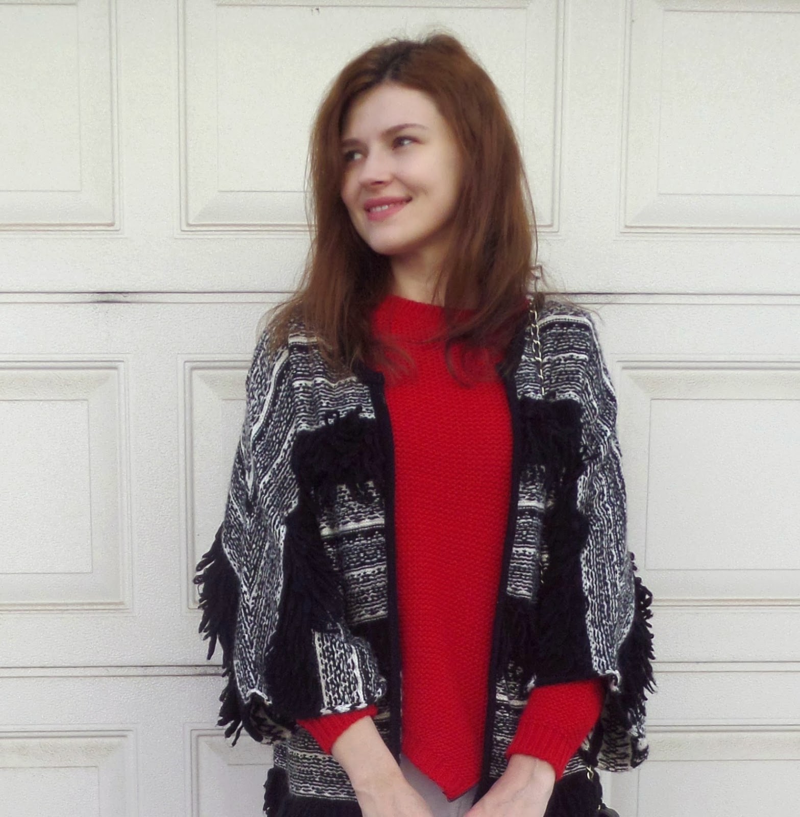 Γεια σας μπουκίτσες! Αυτή την εβδομάδα επέλεξα ένα αρκετά ζεστό ντύσιμο, το οποίο περιλαμβάνει και καινούρια κομμάτια της γκαρνταρόμπας μου. Συγκεκριμένα, το πουλόβερ με το εντόνο κόκκινο χρώμα το βρήκα σε προσφορά στα Bershka (έχω βάλει και το link κάτω αν ενδιαφέρεστε να το αποκτήσετε και εσείς :) ) και μου αρέσει πολύ το φερμουάρ που έχει στο πλάι που δίνει στο ρούχο κάτι πρωτότυπο. Επίσης, η ζακέτα που φοράω είναι και αυτή καινούρια και την αγόρασα από το BAZZ...R σε καλή τιμή. Το BAZZ...R είναι μια αλυσίδα καταστηματών ρούχων με το κιλό και τα οποία καταστήματα εκτός από τις προσιτές τιμές τους, φέρνουν καινούρια ρούχα κάθε μέρα. Άρα τι καλύτερο για μια fashionista να έχει μεγάλη ποικιλία στα ρούχα ; Γιατί μην ξεχνάμε το στυλ σίγουρα δεν εξαρτάται από τα ακριβά ρούχα! Καλά να περνάτε και περιμένω σχόλια σας! Φιλιά :)