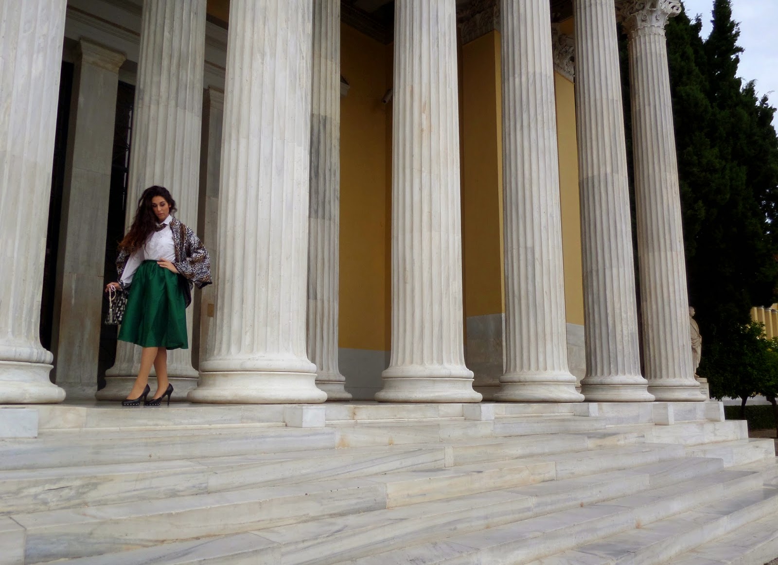 Such a lovely outfit! Love the emerald green skirt!