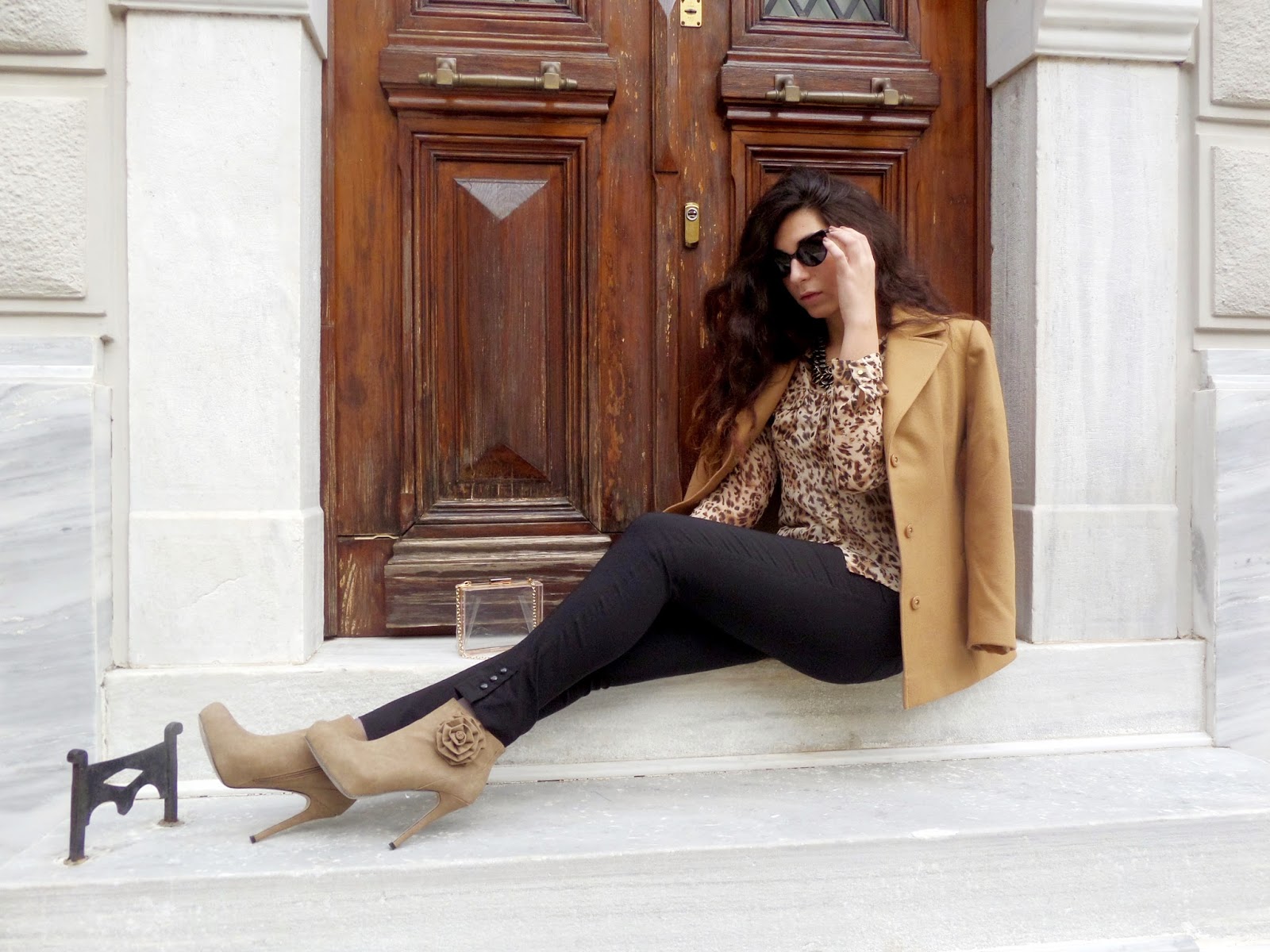 As you already know, I'm a big fan of mixing modern and classic pieces... This time I decided to go for a very classic look, with simple black pants and a camel coat. Camel coats are one of the most classic pieces of outwear and they are making a great comeback this season! So start digging your closets because I know you have one in there (and if you don't, your mother has one for sure). To spice things up a bit, I chose to wear a leopard-printed shirt. Animal print is also one of this season's biggest trends, but I have to advice you to wear it with moderation. Too much of it will make you look like it's Halloween all over again! One or two pieces though, can add an edgy touch to a classic outfit. I also added an old Hollywood vibe with my cat-eye sunglasses, I'm really falling in love with them! Never be afraid to evolve, my loves, to change and to get out of your comfort zone. Fashion and