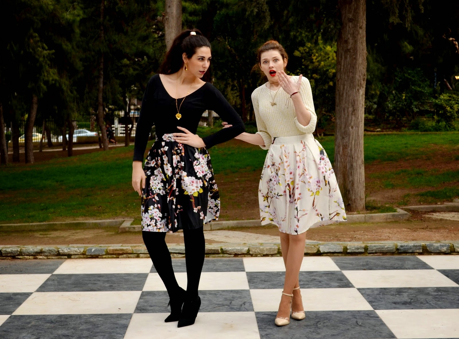 Surprise Surprise αγαπημένοι μου! Σε αυτό το post δεν είμαι μόνη μου! Όπως βλέπετε εγώ και η co-blogger και φίλη μου Μαρία κάναμε αυτή τη φωτογράφιση μαζί και νομίζω πως το αποτέλεσμα είναι πολύ καλό... To θέμα είναι λίγο #twinsies, λίγο Αλίκη στη Χώρα των Θαυμάτων και αρκετό Yin and Yang (aka: Καλό εναντίον κακού). Προφανώς ήμουν το κακό (χιχιχ!!). Μόλις είδαμε αυτές τις φούστες με το υπέροχο pattern από το υπέροχο brand Elite99, η ιδέα μας ήρθε αμέσως... Μιας και έβαλα και το αγαπημένο μου Free People γουνάκι, κράτησα όλο το υπόλοιπο outfit πολύ απλό! Πιστεύω επίσης πως τα κοσμήματα μου έκλεψαν την παράσταση... Αυτό το σετ σκουλαρικιών και κολιέ από το Alyxia Leaf ταίριαξε φοβερά με το look! Τα κοσμήματα του brand Alyxia Leaf είναι φτιαγμένα από φυσικά υλικά, συνδυάζουν πραγματικά φύλλα με χρυσό ή ασήμι και το αποτέλεσμα είναι φανταστικό και αιθέριο... Αγόρια κρατήστε σημειώσεις, μιας και πρόκειται για ένα καταπληκτικό δώρο για του Αγίου Βαλεντίνου (που μιας και το έφερε η κουβέντα πλησιάζει)! Παρά το φοβερό κρύο, περάσαμε πολύ ωραία στη φωτογράφιση αυτή και πραγματικά δεν μπορώ να ξεπεράσω την ομορφιά αυτής της τοποθεσίας... Πρόκειται για το Άλσος Νέας Σμύρνης και αν βρεθείτε εκεί, σας προτείνω να κάνετε μια βόλτα! Όσο για το κυρίως θέμα, πιστεύω πως όλοι έχουμε μέσα μας καλό και κακό, το θέμα είναι τι επιλογή θα κάνουμε! Ως την επόμενη φορά, να περνάτε super και να είστε καλοί (οκ, ίσως και λίγο κακοί χεχεχ)!