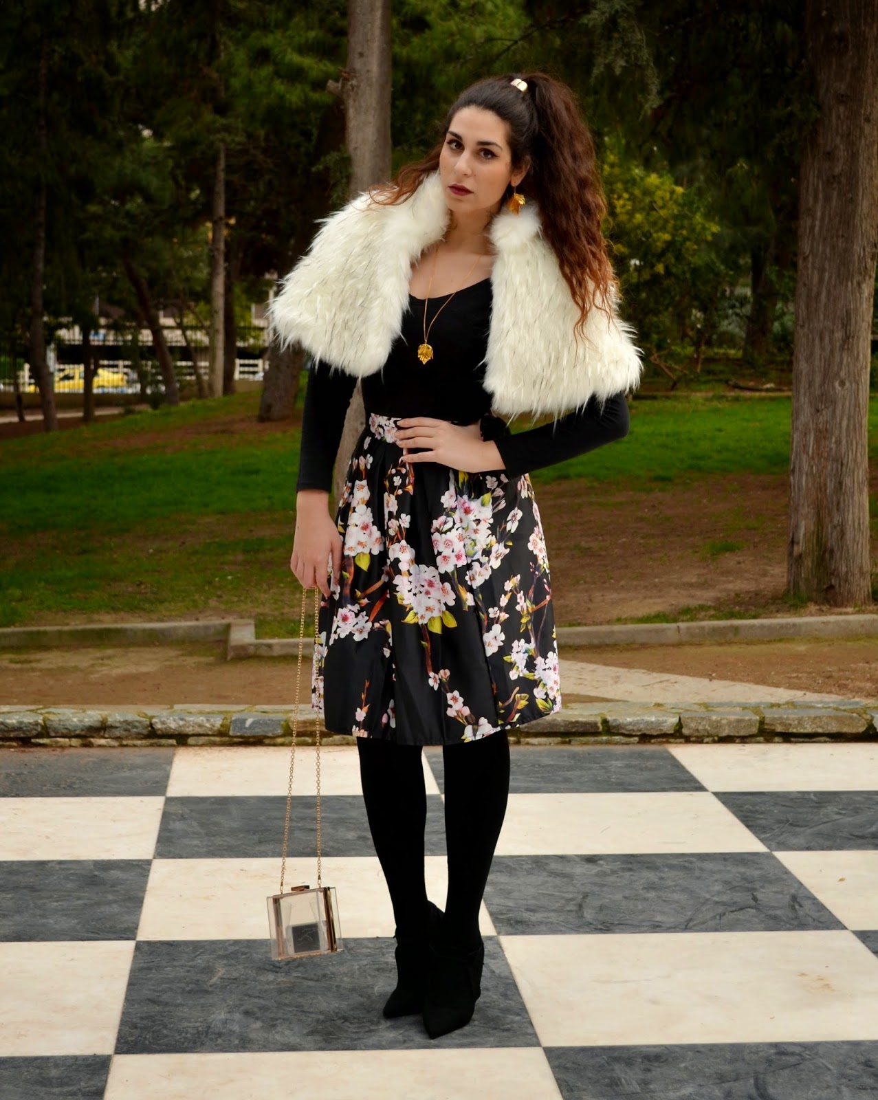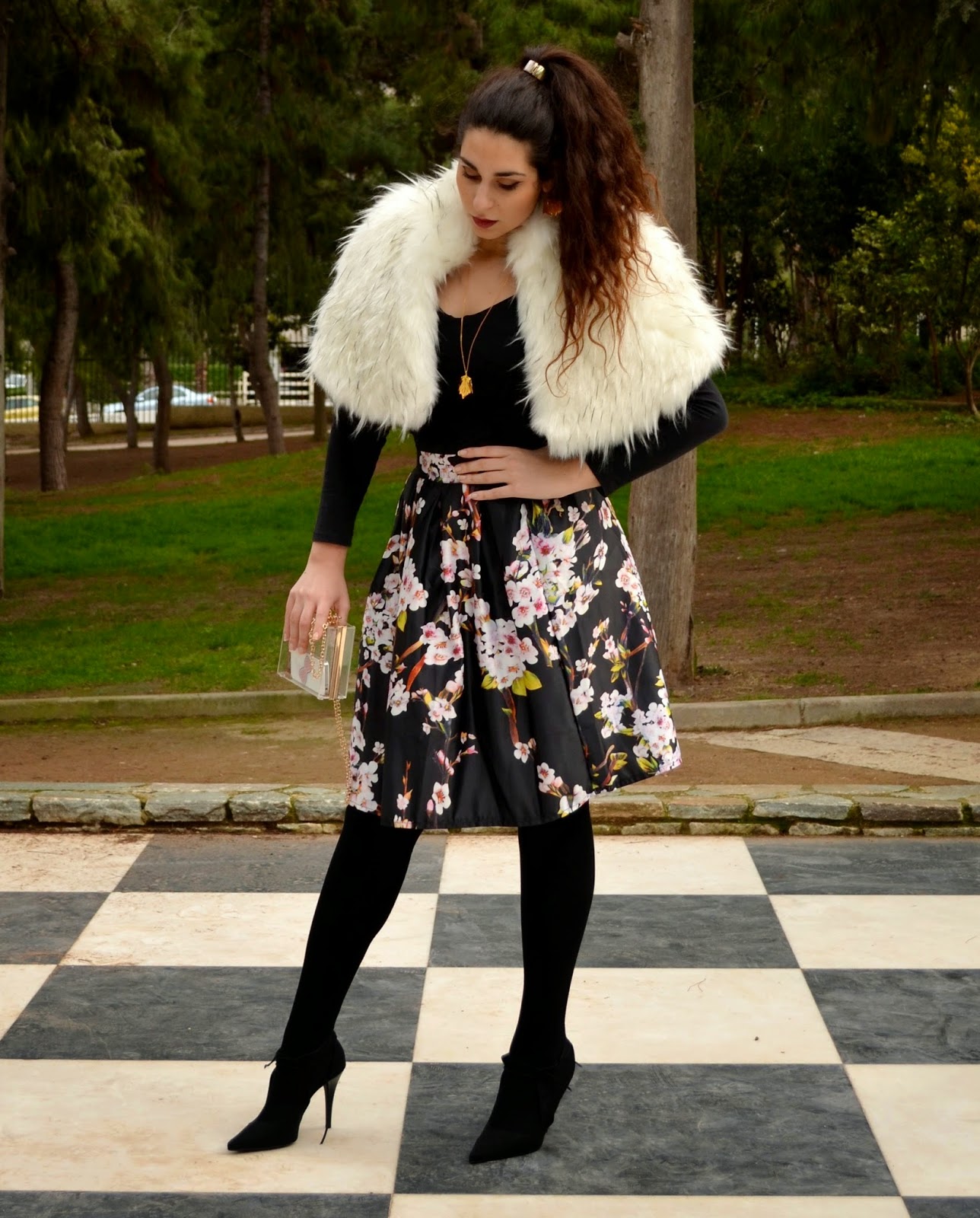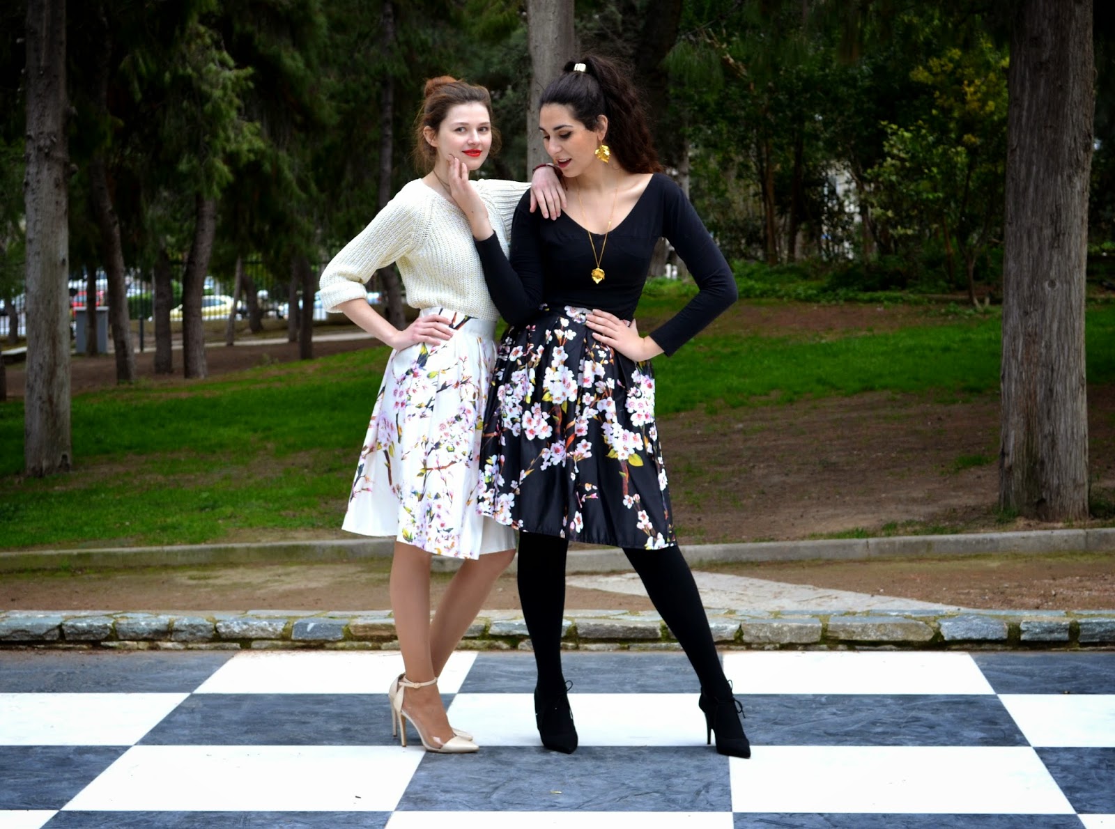 Surprise Surprise my Loves! In this post I am not alone! As you can see me and my co-blogger/bestie, Maria did a photoshoot together and I think it came out great... The theme is a little bit of #twinsies, a little bit of Alice in Wonderland and a whole lot of Yin and Yang (aka: Bad Vs Good). I was obviously bad (hihih!!). When we saw these beautiful, patterned skirts from the fabulous brand Elite99 the idea struck us immediately... Since I added my favorite Free People fur cape, I kept the rest of the outfit pretty simple! I also think that my jewelry stole the show... This Alyxia Leaf fabulous, necklace/earrings set matched the outfit perfectly! Alyxia Leaf's jewelry are made from natural materials, mixing leafs with gold or silver and the result is Ah-mazing and ethereal... Boys take notes, it's a perfect Valentine's Day (which is pretty close btw) gift! Despite the bitter cold, we had so much fun shooting this and I seriously can't get over how beautiful this place was... It's Ν.Smirnis Grove and if you are ever around you should definitely take a walk! As for the main theme, I believe that we all have bad and good inside us, the thing is what are we going to choose! Till the next time, have fun and be good (ok, maybe just a little bad heheh)!