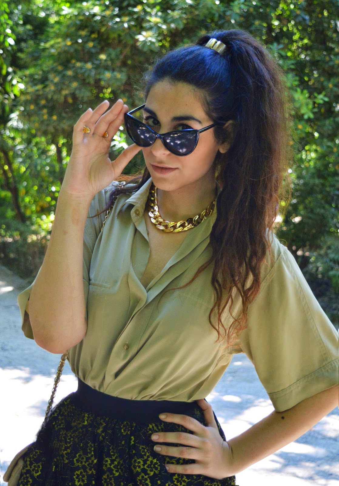 Hello Fashionistas! Το σημερινό look είναι σε στυλ σαφάρι... Συνδύασα glamorous με sporty στοιχεία και γήινα χρώματα για να δημιουργήσω ένα glam αλλά και edgy look! Χρυσά κοσμήματα και λεπτομέρειες με sporty παπούτσια και πουκάμισο... To αγαπημένο item είναι η φούστα... Είναι super mini, super fun και τόσο glamorous! Την αγάπησε αμέσως μόλις την είδα στο Pyzis, ένα site με υπέροχα, ξεχωριστά, μοναδικά fashion κομμάτια! Αν προτιμάτε πιο προσωπική πινελιά στο στυλ σας, πρέπει οπωσδήποτε να του ρίξετε μια ματιά! A, και μιας και η φούστα είναι σούπερ mini (και ξέρετε συμβαίνουν και... ατυχήματα!!) χρησιμοποίησα ένα μικροσκοπικό, μαύρο σορτσάκι από κάτω για έξτρα ασφάλεια... Δοκιμάστε το, σώζει ζωές! Ξέρω ότι μπορεί να μην είμαι στη ζούγκλα, αλλά και η ζωή μια ζούγκλα δεν είναι? Ειδικά στη πόλη... Και όλοι κάνουμε το ''σαφάρι'' μας μέσα σε αυτή, για να ξεπεράσουμε εμπόδια και άγρια ζώα και να τη ζήσουμε όπως θέλουμε! Οπότε γιατί να μην το κάνουμε με glamour, σωστά? Ως την επόμενη φορά, να περνάτε υπέροχα, να βρυχάστε πολύ, να μη φοβάστε και να είστε fierce!!!