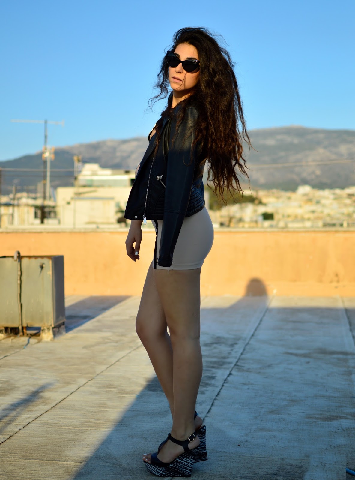 Hello Fashionistas! I don't know if it's the 50 Shades Of Grey influence, but I'm really into bandage dresses lately! I find them really sexy and edgy so when I saw this one on Rosegal I was really excited... Of course that's not all you can find there, since there is a ton of trendy clothes and accessories in amazing prices! Unfortunately the dress was kinda shorter that I thought it would be... So I wore a pair of little, black, boxer shorts underneath just to be safe! It's my go to trick and you should definitely try it next time you're worried about a dress or a skirt being too short! As for the rest of the look, I wanted it to have kind of a ''badass'' attitude so I added the all-time classic, biker jacket. I also wore my cat-eye sunnies for a retro touch! I must admit that it's a daring outfit, but I love my body and you should too! There is nothing to be ashamed of... Find what compliments yours and don't be afraid to show it off! It's our Prerogative!