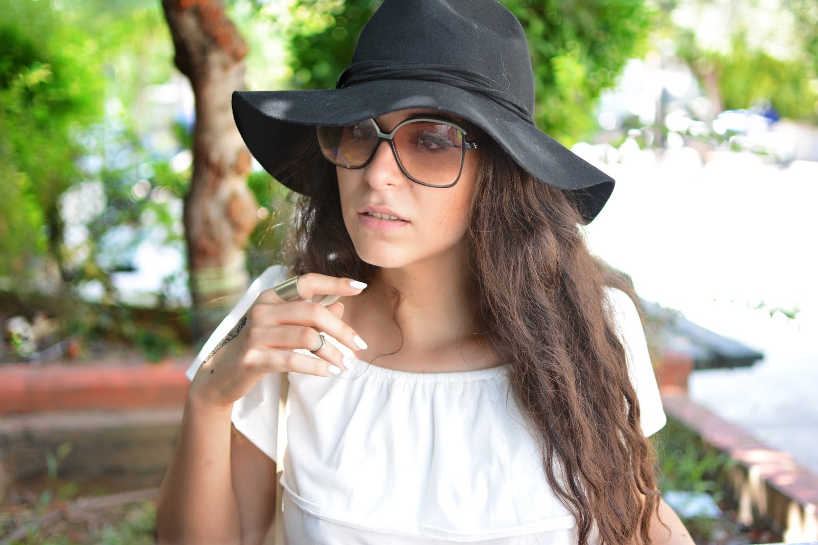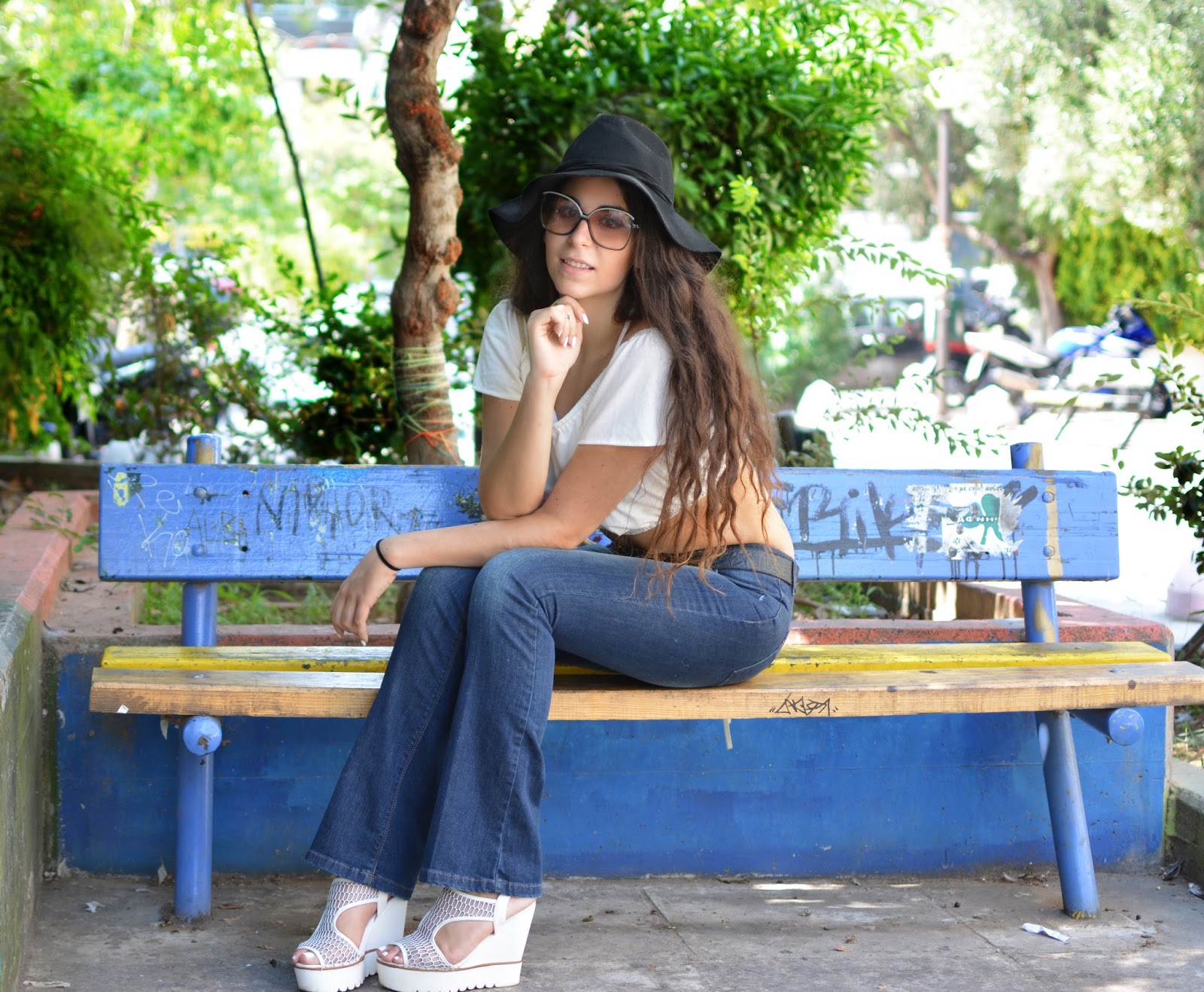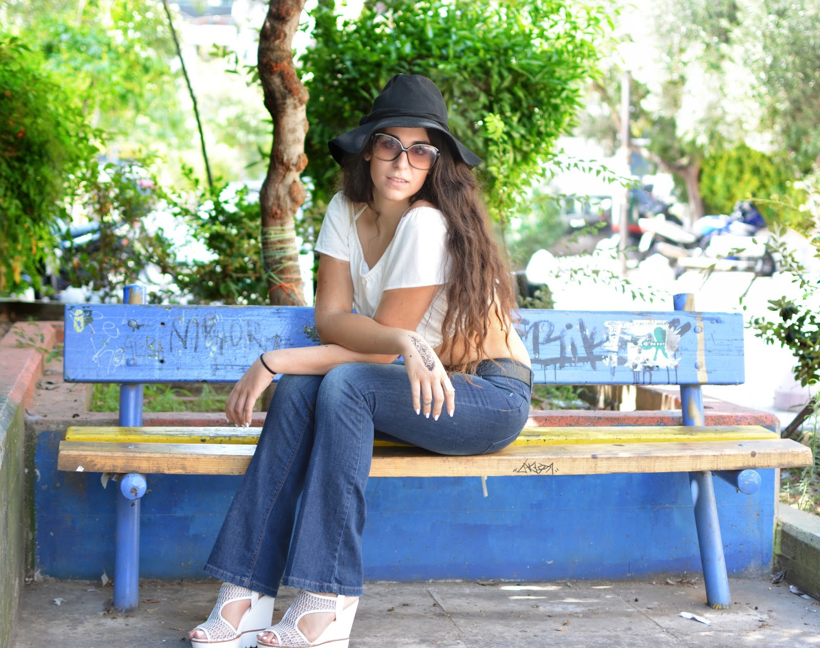 Περίπου δηλαδή... Μπορεί να μην γεννήθηκα στα 70's, αλλά πάντα ήταν μια από τις αγαπημένες μου δεκαετίες! Μ'αρέσει που τότε η νεολαία πάλευε για την αγάπη... Έτσι λοιπόν, όταν έμαθα ότι αποτελούν trend, χάρηκα πάρα, πάρα πολύ! Το αγαπημένο μου τζιν καμπάνα, το νέο μου τοπ, ένα μεγάλο καπέλο και αυτά τα γυαλιά (τα οποία είναι όντως από τα 70s!!) ήταν όλα όσα χρειάστηκα για να ταξιδέψω πίσω στο χρόνο, παραμένοντας απόλυτα on trend! To φτερωτό flash tattoo επίσης ταιριάζει με το ελεύθερο πνεύμα της τότε νεολαίας... Εσείς θα δοκιμάζατε αυτό το look? Πείτε μου τη γνώμη σας κάτω στα σχόλια! Και να θυμάστε, το Καλοκαίρι είναι ακόμη εδώ, οπότε να αγαπάτε και να περνάτε υπέροχα!