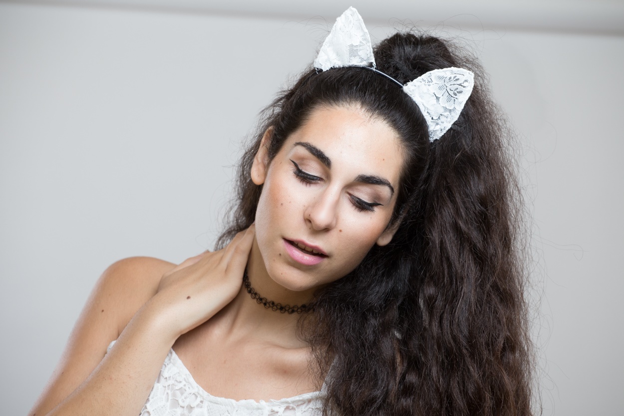Love the lace and those kitty ears are so cute! :)