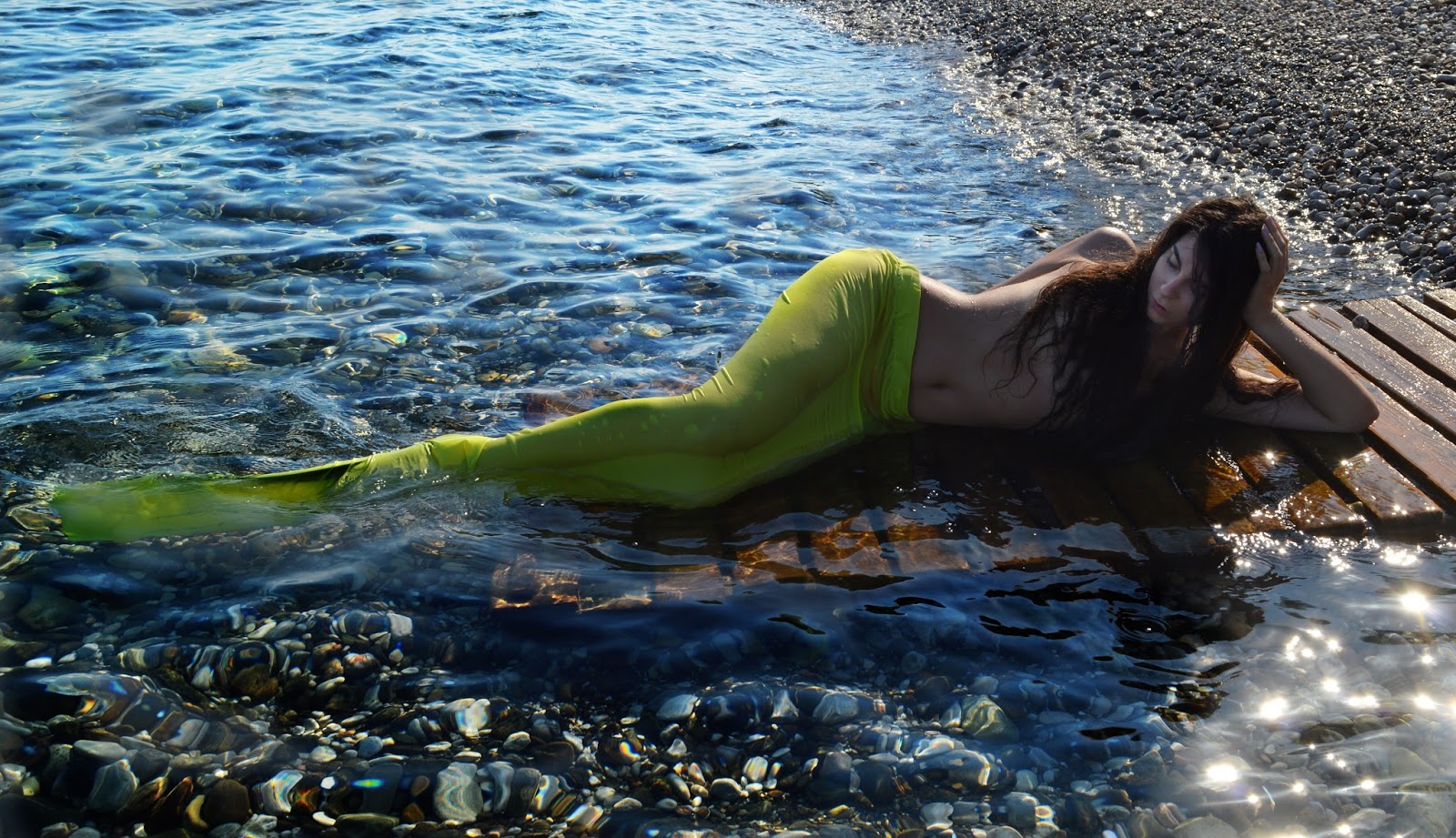 Hey babes! I'm making a comeback after my short vacation with a very different post! It's all about sharing with you another aspect of my personality... For as long as I can remember I was obsessed with mermaids and I wanted to be one of them (before I discovered high-heels that is!!). There is something so majestic about such a creature and I really don't know if they are real, but if that's the case, they're better of hidden! For their sake! Some days ago I read a status on facebook ''If mermaids existed they would be the most worthless creatures on the planet. You cannot eat her or f!@ck her'' . It must be the most sexist thing I've ever heard... So, lemme get this straight, anything that cannot be eaten or used sexually is considered worthless? Seriously? No... Just NO *furious*! Anyway, this photoshoot took place in Agioi Theodoroi with my bestie and we had SO much fun and a little accident, thankfully not something serious! I made this tail about 5 years ago with the help of a friend, it's not in the best condition now and I'm thinking about making or buying a new one! I can't wait to read your thoughts about this unusual photoshoot and about everything else... Be free, wild and swim away!
