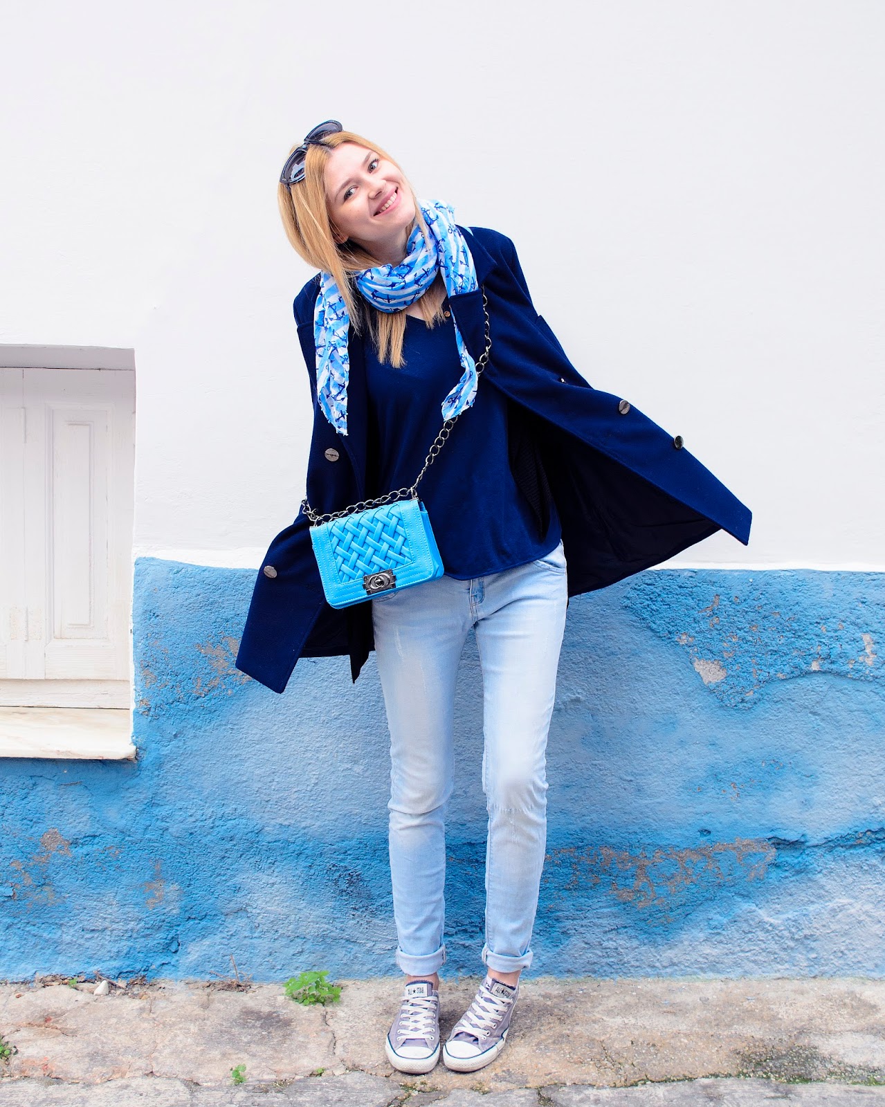 Love the all the blue, I have the same handbag in black but the blue is so gorgeous!