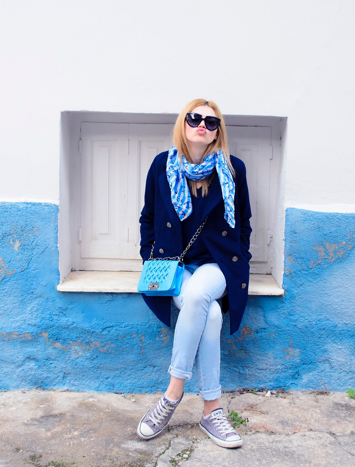 Γεια σας Μπουκίτσες! Καιρό είχα να κάνω κάποια φωτογράφηση και είμαι πολύ χαρούμενη που επιτέλους βρήκα την ευκαιρία να την κάνω :) Όπως έχετε προσέξει το κυρίαρχο χρώμα στο ντύσιμό μου είναι το μπλε, θα μπορούσε πιστεύω το σκούρο μπλε να είναι το καινούριο μαύρο. Πριν αρκετό καιρό μου ήρθε αυτή μπλε μπλούζα από την αγαπημένη μου Γαλλία :) Αυτή η μπλούζα είναι από την eco-friendly εταιρία LEAX και είναι πολύ ιδιαίτερη γιατί είναι φτιαγμένη από 100% βαμβάκι και τα μικρά χαριτωμένα κουμπιά της είναι φτιαγμένα από φυσικό ξύλο. Επίσης έχει σημασία πως η LEAX έχει αφαιρέσει τα πλαστικά πακέτα μεταφοράς και χρησιμοποιεί πακέτα φτιαγμένα από χαρτί και χαρτόνι ανακυκλωμένων και ανακυκλώσιμων kraft. Ήθελα ακόμη να αναφέρω πως τα καταπληκτικά γυαλιά που φοράω είναι από την εταιρία OLIVER GOLDSMITH, γυαλιά της έχει φορέσει και η Audrey Hepburn στην ταινία Breakfast At Tiffany’s!