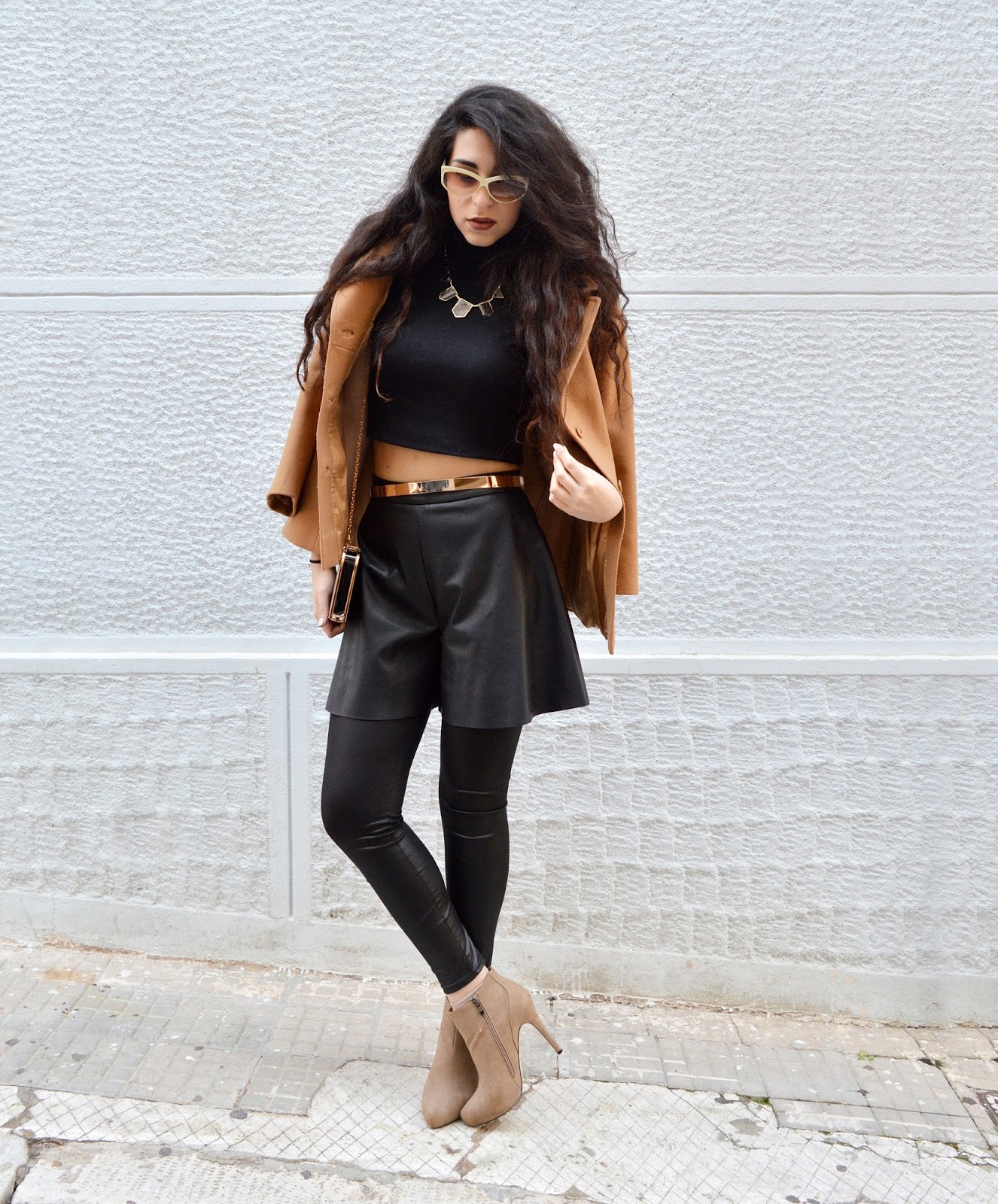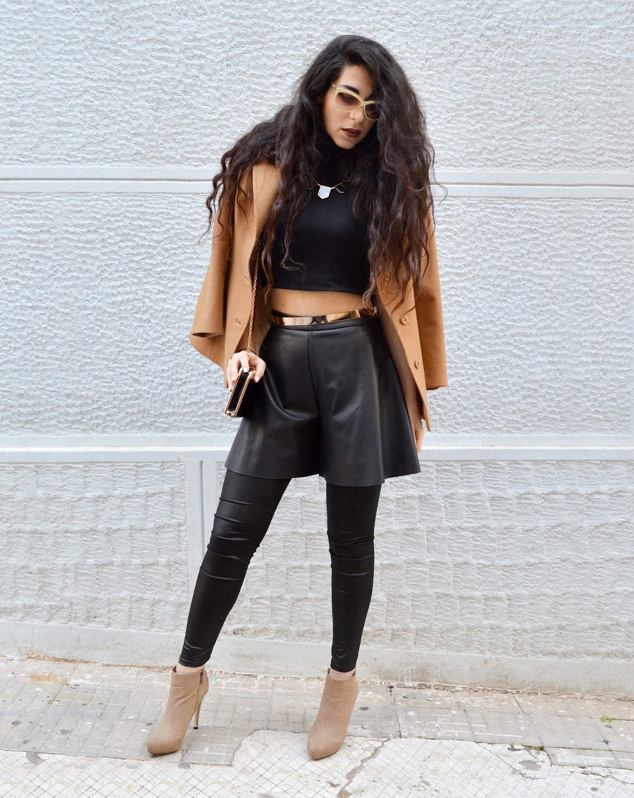 Hello Fashionistas! New week, new post! Today I'm giving you my version of the ''Skirt Over Pants'' trend... Only in my case it's actually skort over leggings! I believe it's really different, fun and quite bold! The look is total black with accents of camel and gold... My metallic belt is from NewDress and it's really cool since it can instantly glam-up any look! I also love statement necklaces, one of my faves is the one I'm wearing by Dresslink, since it's subtle while being glamorous and chic at the same time... However, what made the whole look for me, is my vintage Givenchy pair of sunglasses! They were gifted to me by a dear friend and I adore them! If you want to elevate an outfit, without spending too much on designer everything, invest in a vintage piece... Such as a bag or pair of sunglasses. You can find great deals in outlets or thrift shops! Fashion is all about experimenting and having fun, so break the rules and be open to investigating for beautiful, little treasures you can discover in the most unlikely of places! Let me know down below in the comments what you think about this outfit and if you would try it... Also if you're a vintage hunter, like myself, tell me which one is your favorite ''hunting'' location!