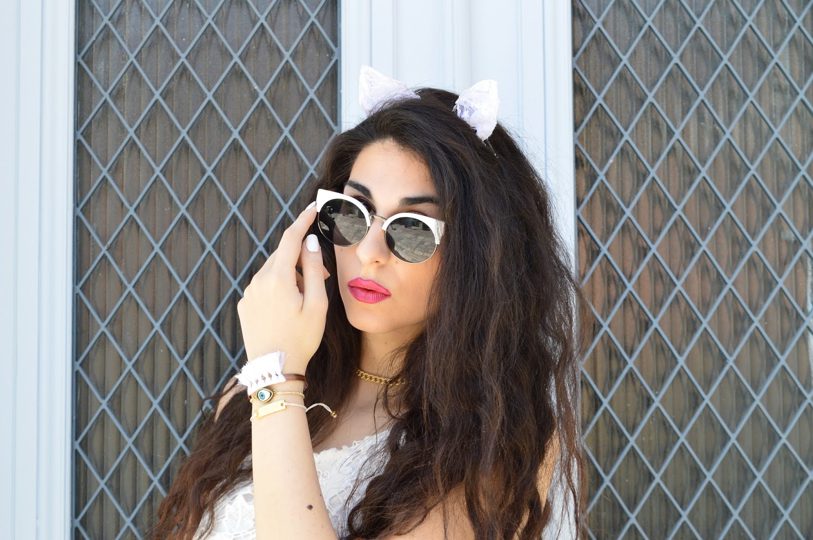 Hello babes... March 18th and Spring is nowhere to be seen! Summer on the other hand feels closer than ever... Like real, warm temperatured, sun-burning, Summer! Which is good, but I must admit I kinda miss having Spring around here... Nowadays it feels like we only have two seasons... Winter and Summer! Anyway, enough with the whining and on to the outfit... It's festival season and even though I'm not going to Coachella, I'm definitely inspired by it. Bell bottoms, a lace crop-top and cat ears make for the perfect casual/boho get up! Oh, and choker necklaces... I've been obsessed with them lately and all the ''it girls'' around the world seem to agree with me by declaring them as the new flower crown! I'm also obsessed with my new handmade, boho bracelets by the talented greek designer Kristia Lazarie! I believe it's really important for us bloggers and consumers to support local designers... I don't know if it's the weather or something else but I'm really feeling myself lately... Can't wait to read your thoughts about this outfit down below in the comments! Until next time, do things that you want to do, take that extra time for your selves and just have fun!